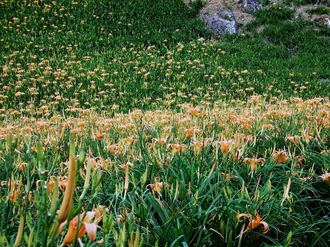 To be used as food, these flowers must be harvested before they bloom. In recent decades, to promote tourism to this area, farmers have been encouraged through subsidies to allow some of their daylilies to bloom. The result is Mother Nature’s masterful artwork, with verdant rolling hillsides decorated with splotches of bright orange. During this time, due to the large number of visitors, the public is discouraged from driving up and down the narrow mountain roads and parking lots, and shuttle bus services are put into operation. At other times of the year, this is a much quieter mountain retreat.