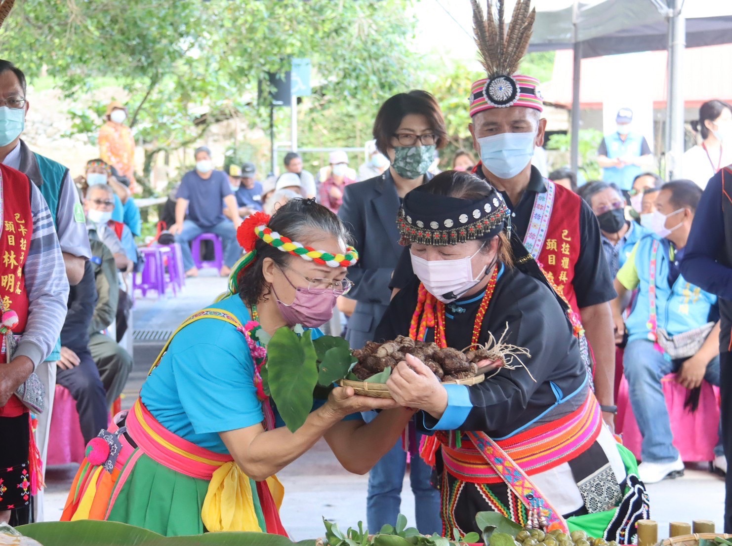 On March 31, 2022, the opening ceremony was held by the East Longitudinal Valley Headquarters with the local Parayapay tribal culture and the history of the Post as the main theme. First, ten tribal warriors escorted the witness of Zhongxing Post, Mr. Sun Baoshan, and made a grand entry into the venue. Tribal chiefs then led the government officials and VIPs to perform a praying ritual, asking the ancestral spirits for their blessings on the opening ceremony and future operation of Zhongxing Post. Following that, a handover ceremony took place. A sash that symbolizes the guarding duty was handed over to the East Longitudinal Valley Headquarters by Mr. Sun Baoshan. Then, Director Chen-ling Kuo of the East Longitudinal Valley Headquarters handed the Amis “alofo” over to the tribal chief, symbolizing that a tribal group is now in charge of the operation of Zhongxing Post. Finally, a feast that combines the three elements of traditional Amis food (“culture”), seasonal produce (“season”), and experts (“representativeness”) is enjoyed by all participants. Government officials and VIPs, while enjoying tribal delicacies served one after another, listened to experts who prepared the meal talk about tribal food culture. The event was attended by distinguished guests, including Magistrate April Yao of Taitung County, Legislator Chao-Hao Liu, Mayor Guo-qiang Li of Luye Township, Taitung County, Department Head Ming-zong Fang of the Department of Indigenous Affairs of Taitung County Government, Chairman Gui-lan Pan of Taitung Tourism Association, councilors, village chiefs, legislators, tribal elders, and local residents. Everyone participated in this joyful event to welcome the new Zhongxing Post.