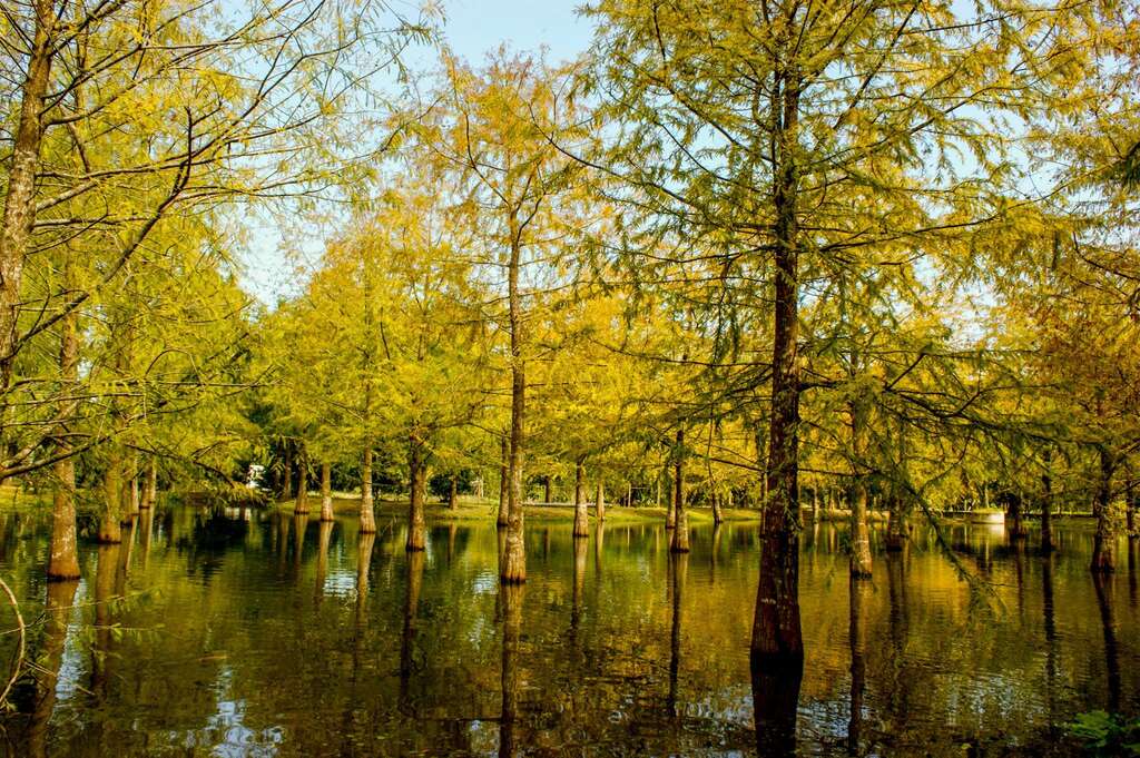SNSで一気に有名になった「鈺展苗圃ラクウショウ林」があります。その美しさは有名な「雲山水湿地生態園区」に引けを取りません。毎年木々の葉が色づき始めると、聖地巡礼とばかりに大勢の人が押し寄せます。