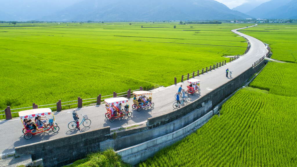 台東池上鄉の田畑を貫く小道を行けば、目に入るのは風に吹かれて揺れる稲の波です。缶コーヒー「伯朗咖啡」コマーシャルのロケ地となったことで人気に火がつき、「翠緑の天堂路(天国の道)」と呼ばれています。