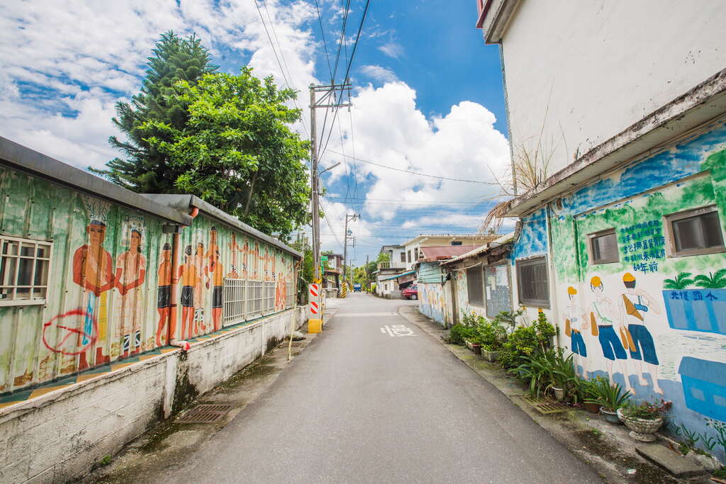 大全社区の「82巷故事街」があります。その低い壁にはメルヘンちっくな絵が描かれています。かつての農作業の様子など往時の農村の記憶を伝えながら、見る人にはかつての農業の大変さが伝わってきます。
