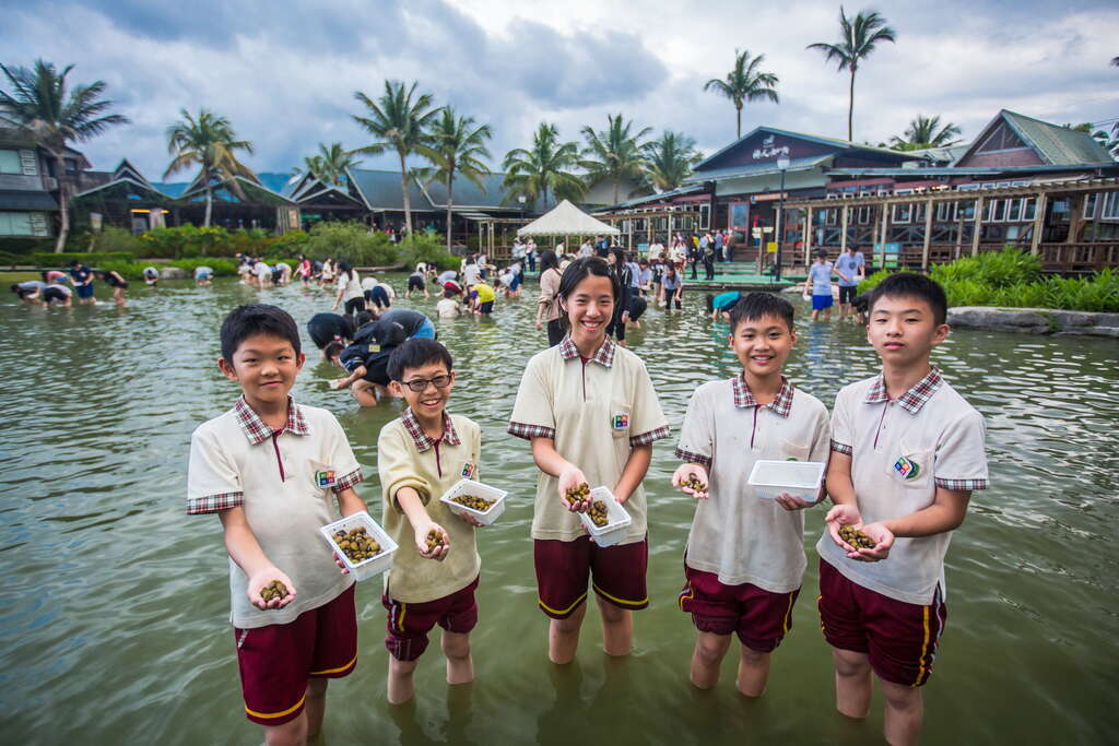 寿豊鄉は清らかな水に恵まれています。寿豊にある「立川漁場」は自然湧水を利用し、ぷっくりと肥えて旨味もたっぷりの黄金シジミを養殖し、シジミ錠、シジミエキスなどの製品も開発しながら生産しています。「立川漁場」では黄金シジミの生態、養殖の過程について学べるだけでなく、「摸蜊仔兼洗褲(シジミに触りズボンを洗う=台湾の俗語で「一挙両得」の意)」と題したシジミ採りに挑戦することもできます!
