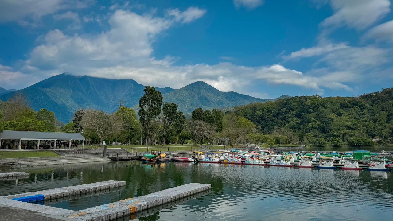 來跟鯉魚潭的大山大景合照!