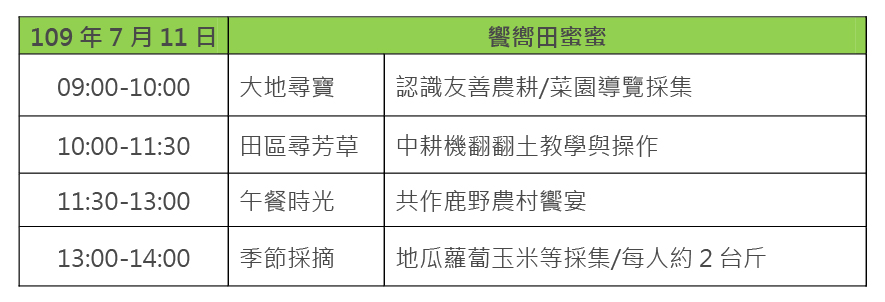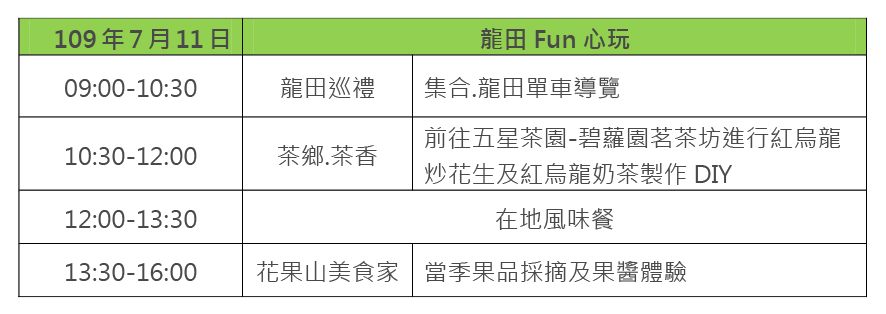與暑期熱氣球嘉年華活動搭配,規劃出種種農村遊程,以在地食材結合風情民俗,「花鹿米」代表著梅花鹿的故鄉之外,米在農村也有著「茶米」及「稻米」的雙重意義,更是鹿野鄉的兩大農特產,更採用「follow me」的英文意義,就像訴說著,隨著在地人的腳步體驗精采的樂活美學吧!