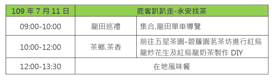 左倚中央山脈的鹿野鄉永安村,經過社區居民多年共同努力,除了成立臺東首個環境教育場域,也是農委會首屆金牌農村、臺東縣惟二環保民宿其一亦位於此。位於村莊不遠處的玉龍泉生態步道,自成悠然的小小生態系,是一個身心靈避暑的好地方。新元昌紅茶產業文化館創辦人故溫增坤老先生,是臺東茶業產銷的第一人,進入文化館可以完整了解臺東茶業發展歷史,深具客家特色的擂茶體驗,亦是親子共遊的好活動。