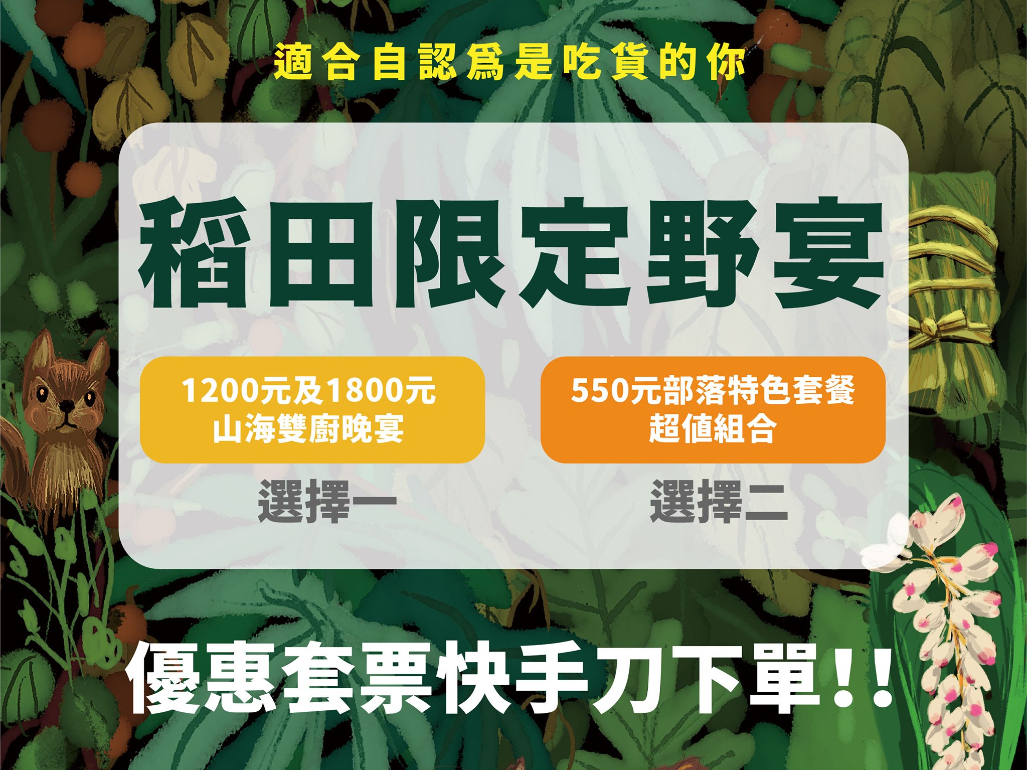 春日稻田間複刻經典部落餐桌,雙廚搭著土地盛產,端出頂級山海宴,每一道餐食,都是一個故事。