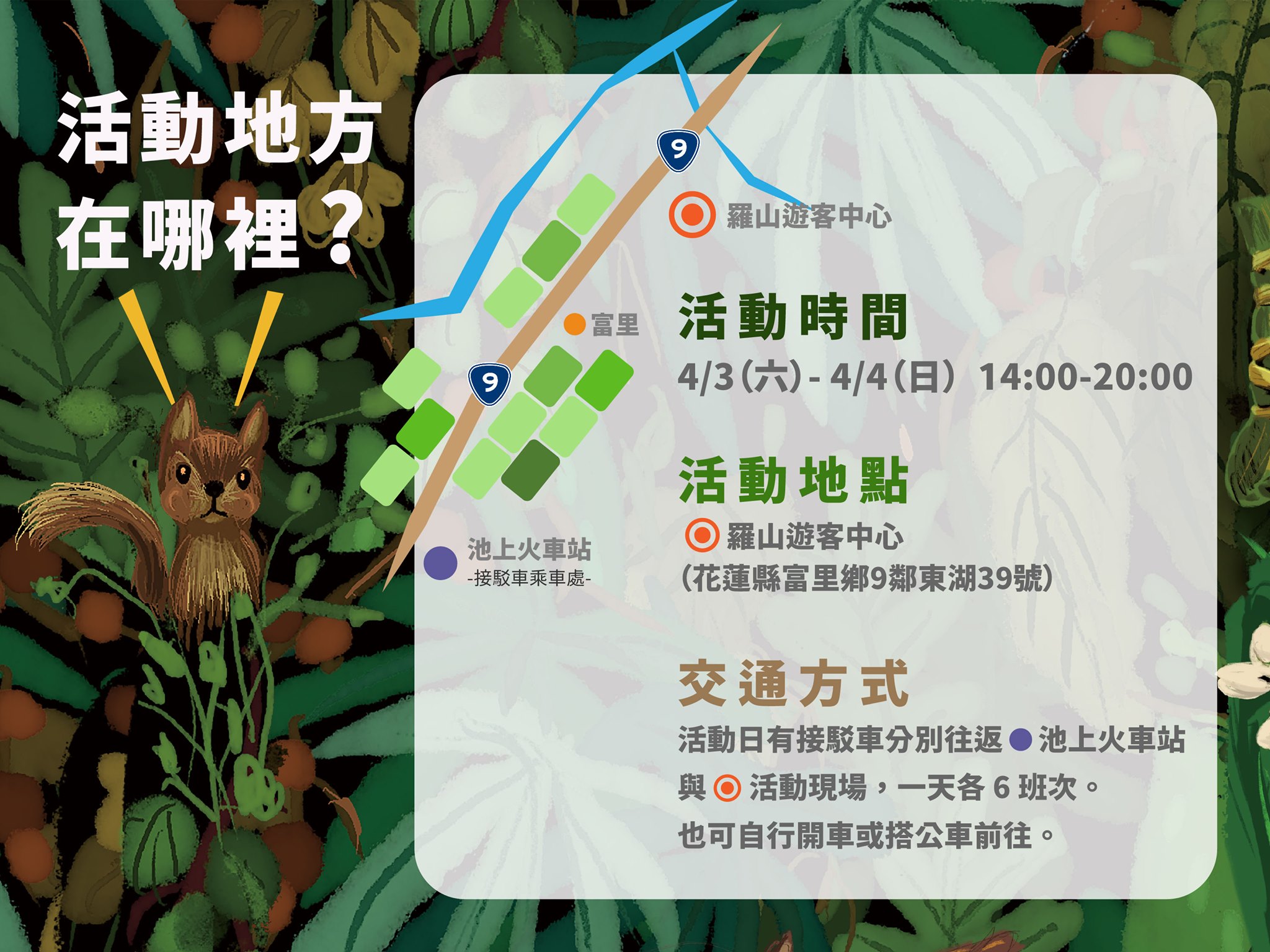 活動地點👉本處羅山遊客中心(花蓮縣富里鄉羅山村9鄰東湖39號)