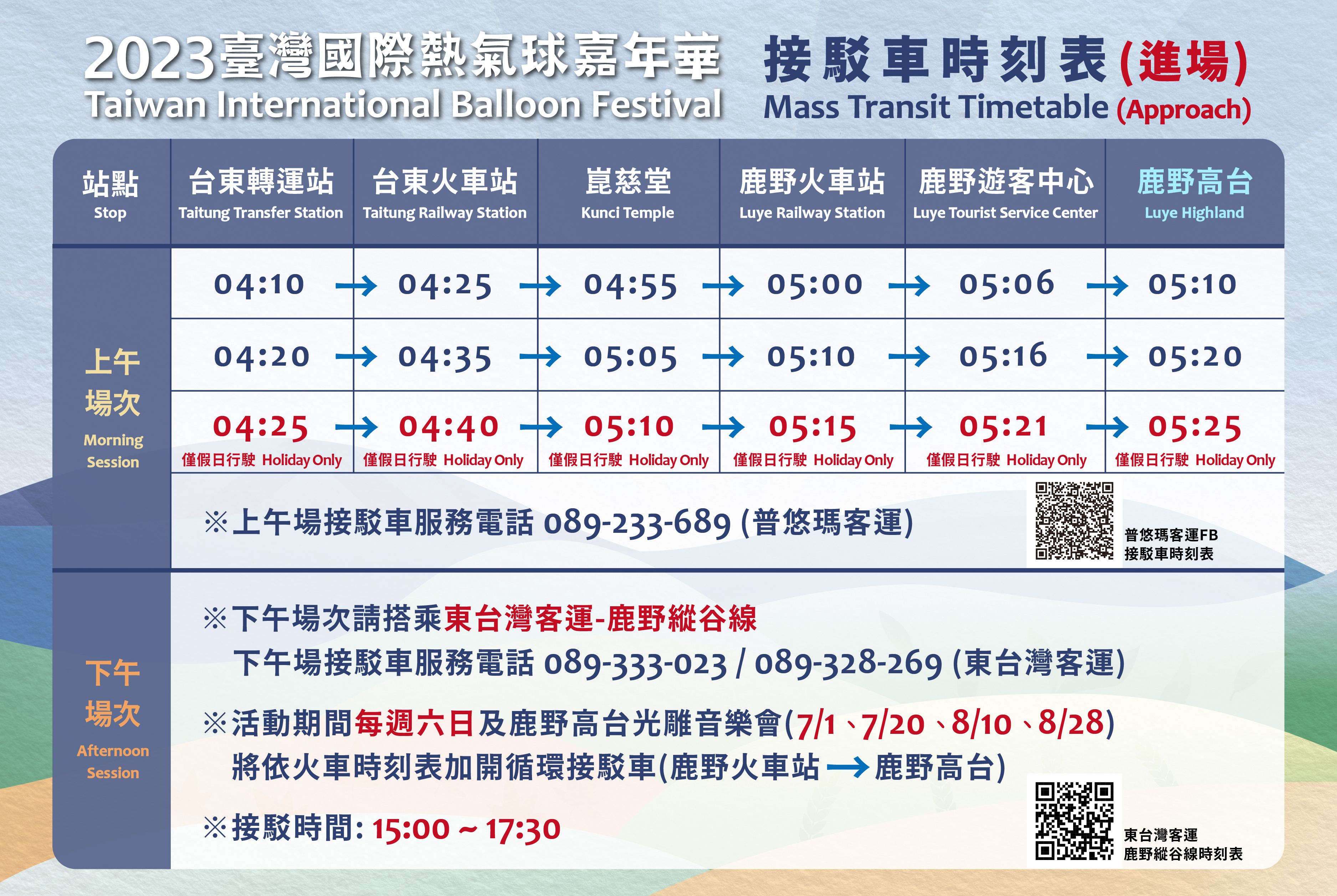 【2023臺灣國際熱氣球嘉年華 交通接駁資訊】
