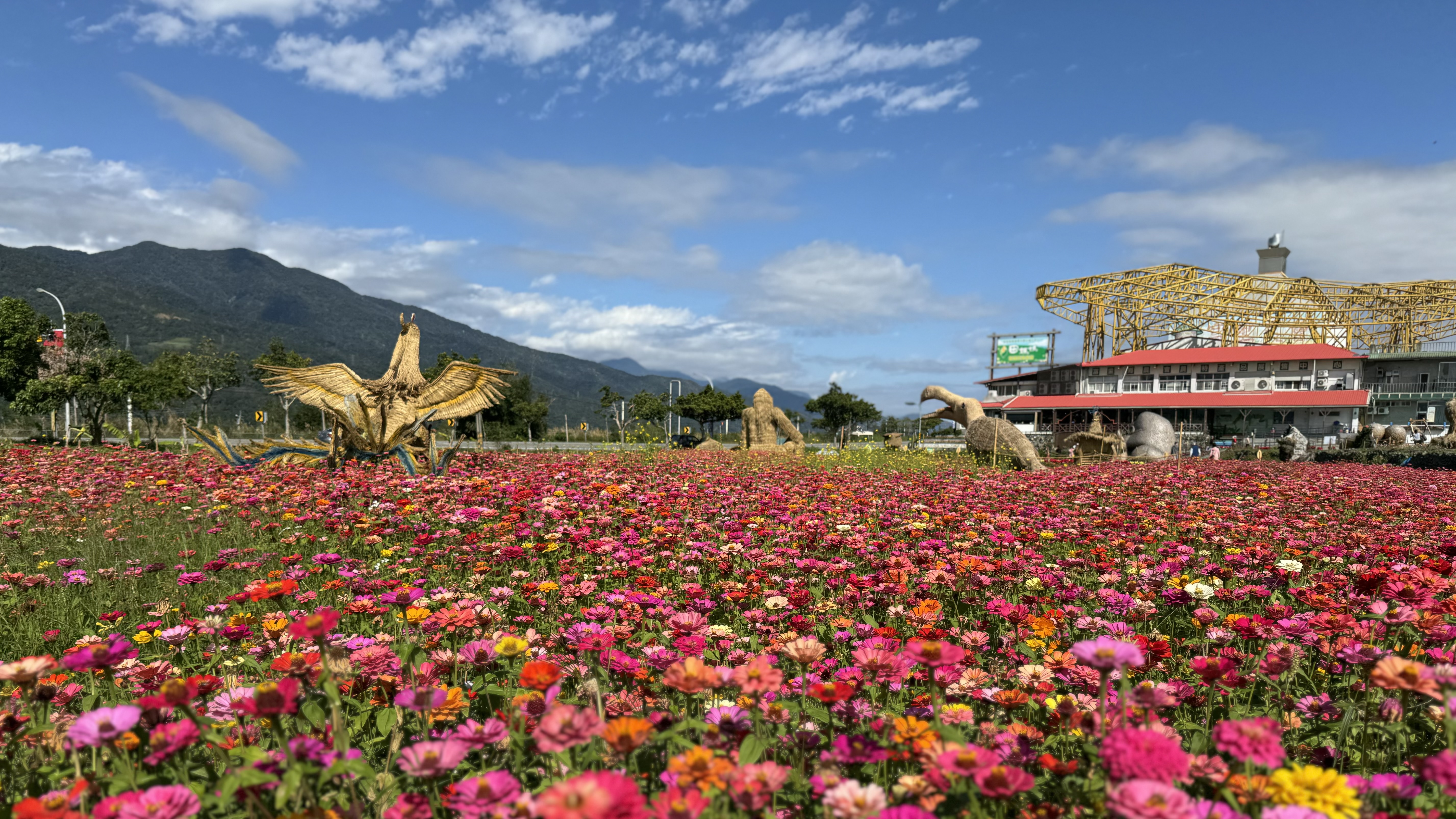 春季花海期的來臨,富里鄉農會旁的波斯菊花海已經競相奔放,一旁的稻草作品相襯,就像飛翔在花海中,太可愛了啦!快趁最佳花期來拍照吧!