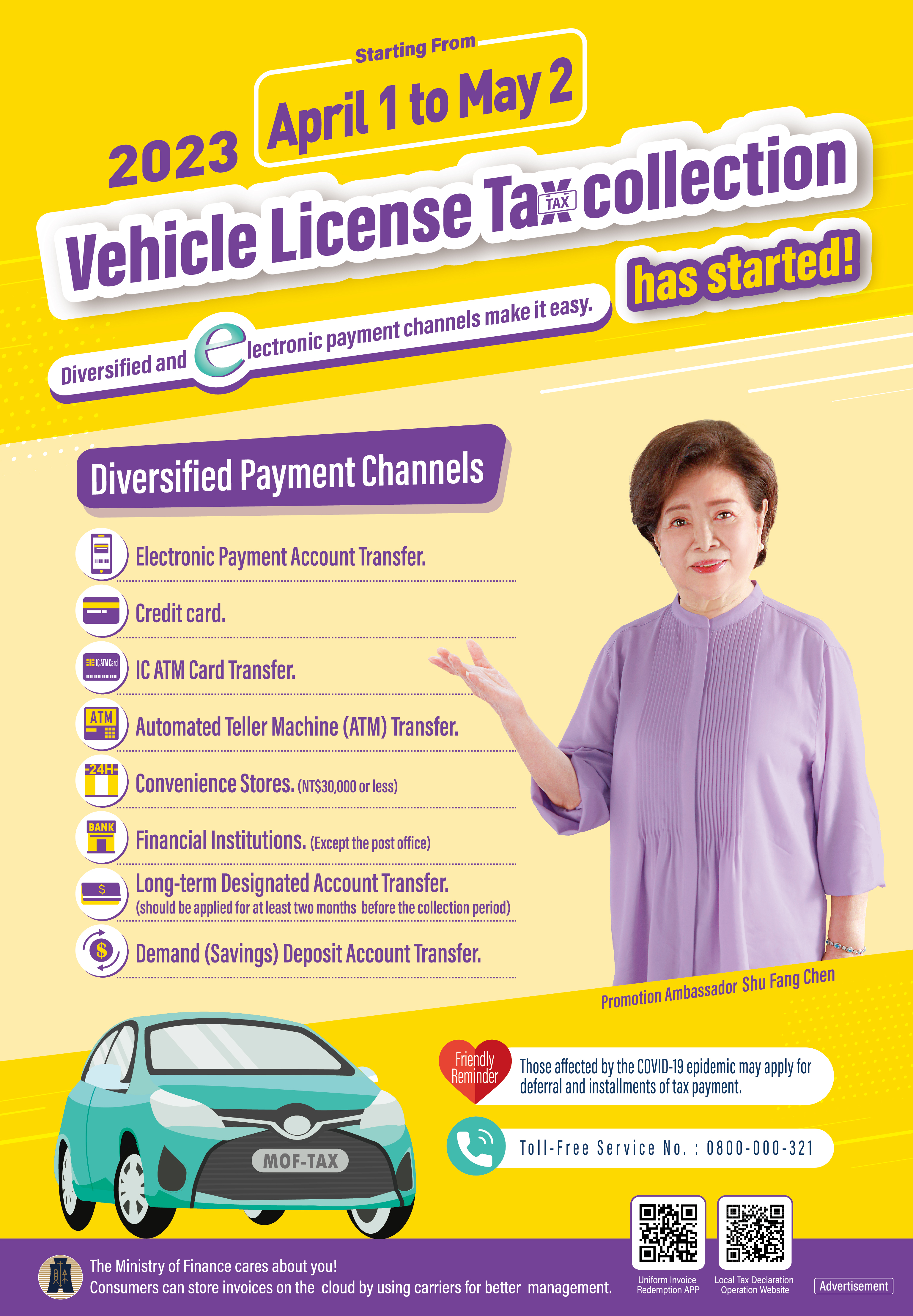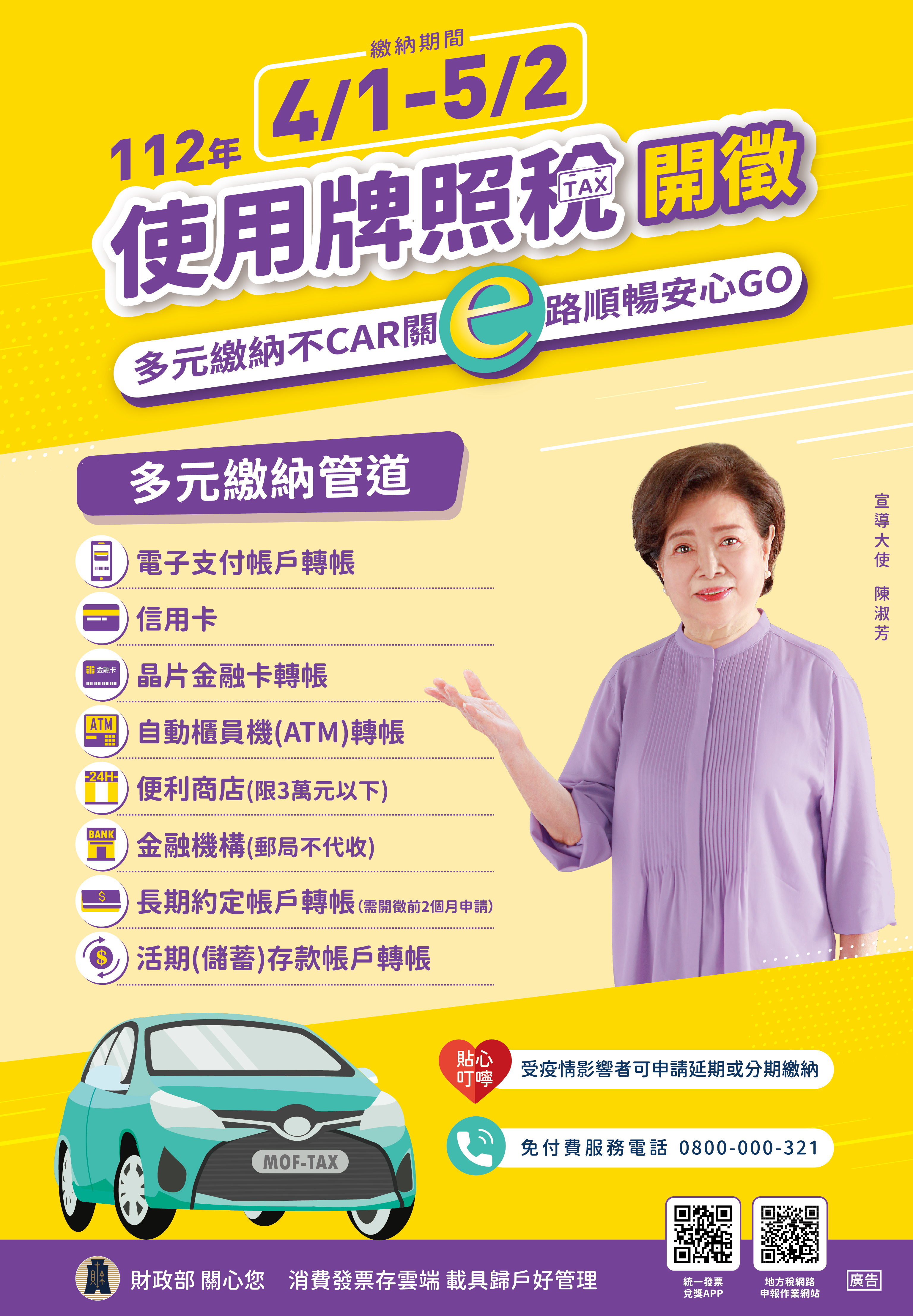 112年4月1日至5月2日使用牌照稅開徵-多元繳納不CAR關‧E路順暢安心GO