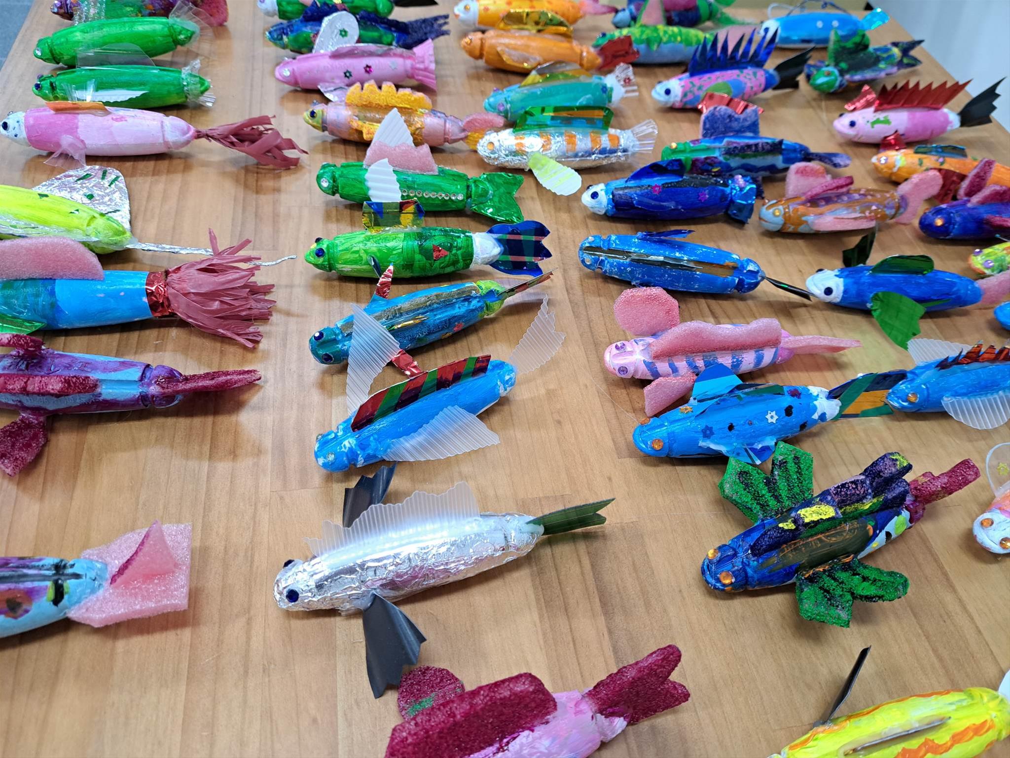 過去澎湖傳統石滬捕魚的文化中,石滬裡滿滿都是魚蝦的豐收場景,如今因為環境變遷,垃圾浪潮席捲而導致海洋生態枯竭,以往豐盛的魚群已不復見。邀請大家一同對海洋環境進行關懷,透過實際參與海廢藝術品創作的過程,了解廢棄物對海洋的影響,減塑、減廢可以從自身做起,並向全世界宣傳保護海洋的重要性。