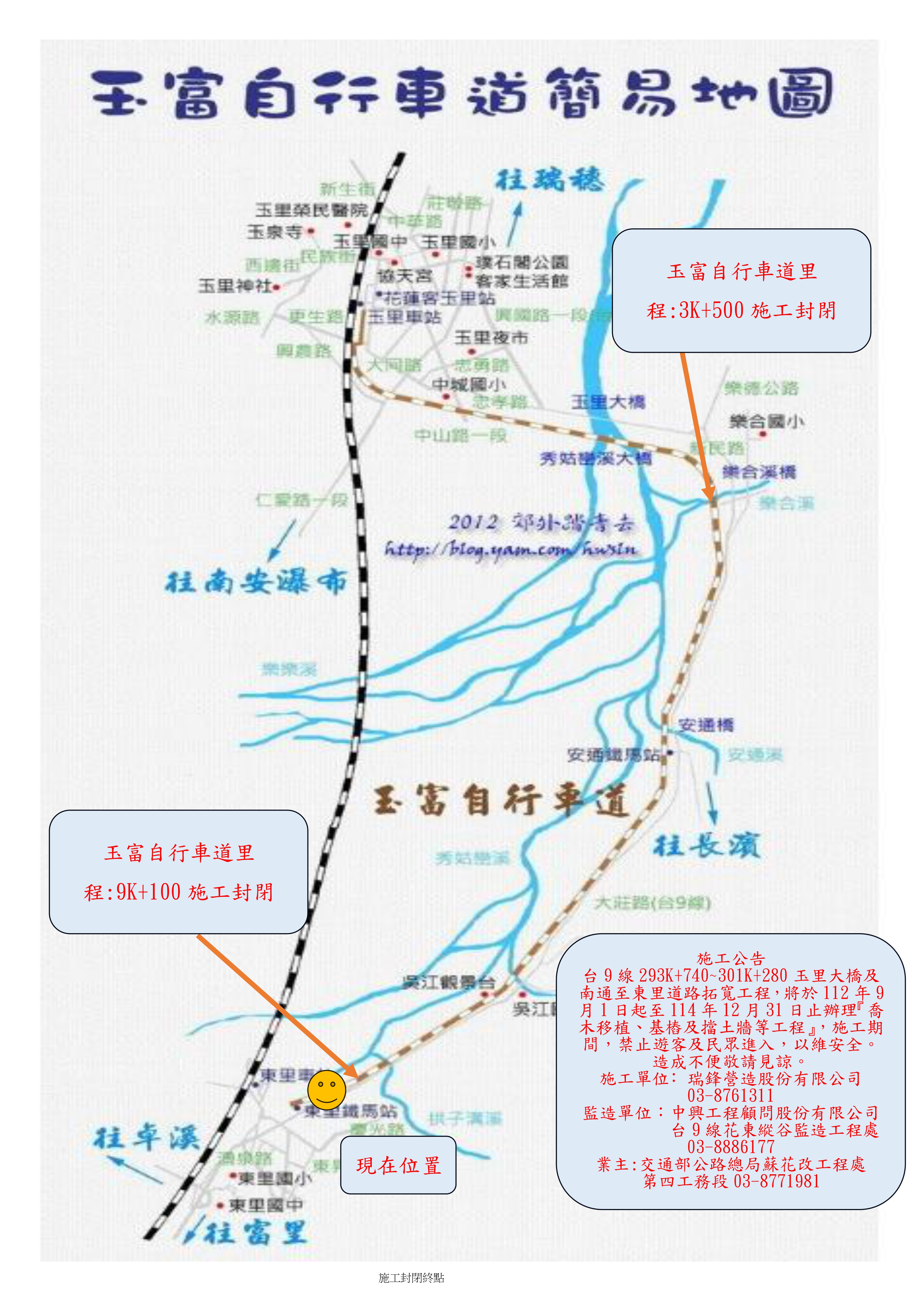 【公告】台9線293K+740~301K+280玉里大橋及南通至東里道路拓寬工程🚧,即日起封閉玉富自行車道部份路段