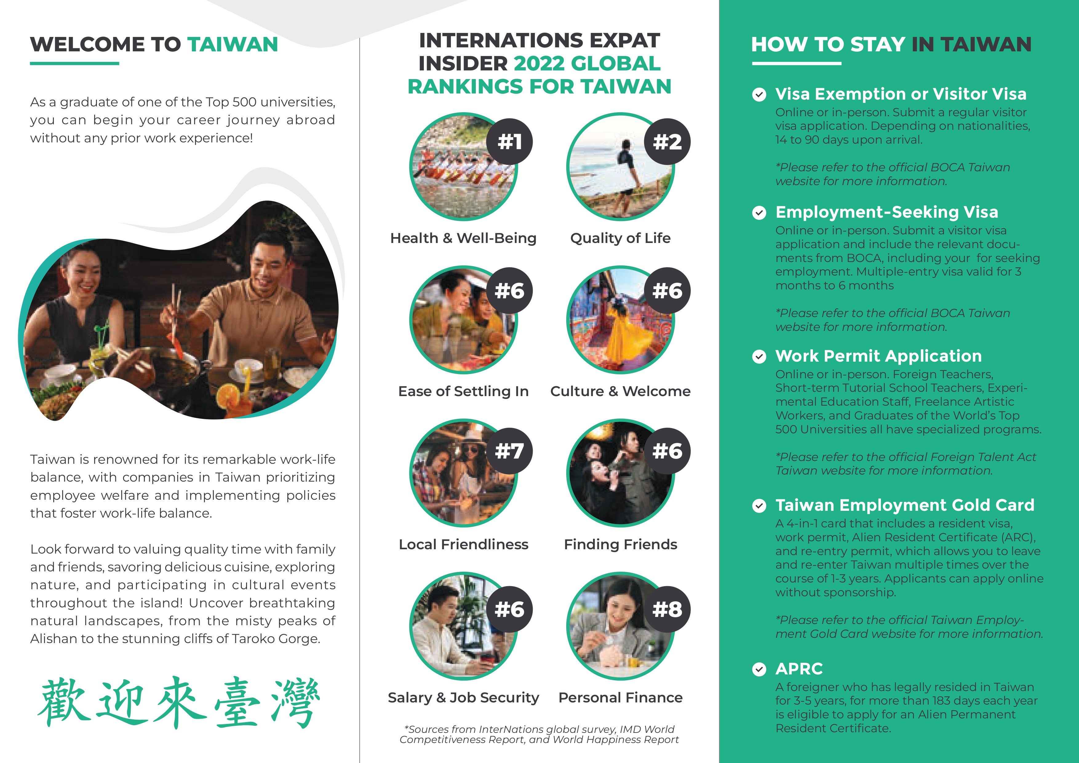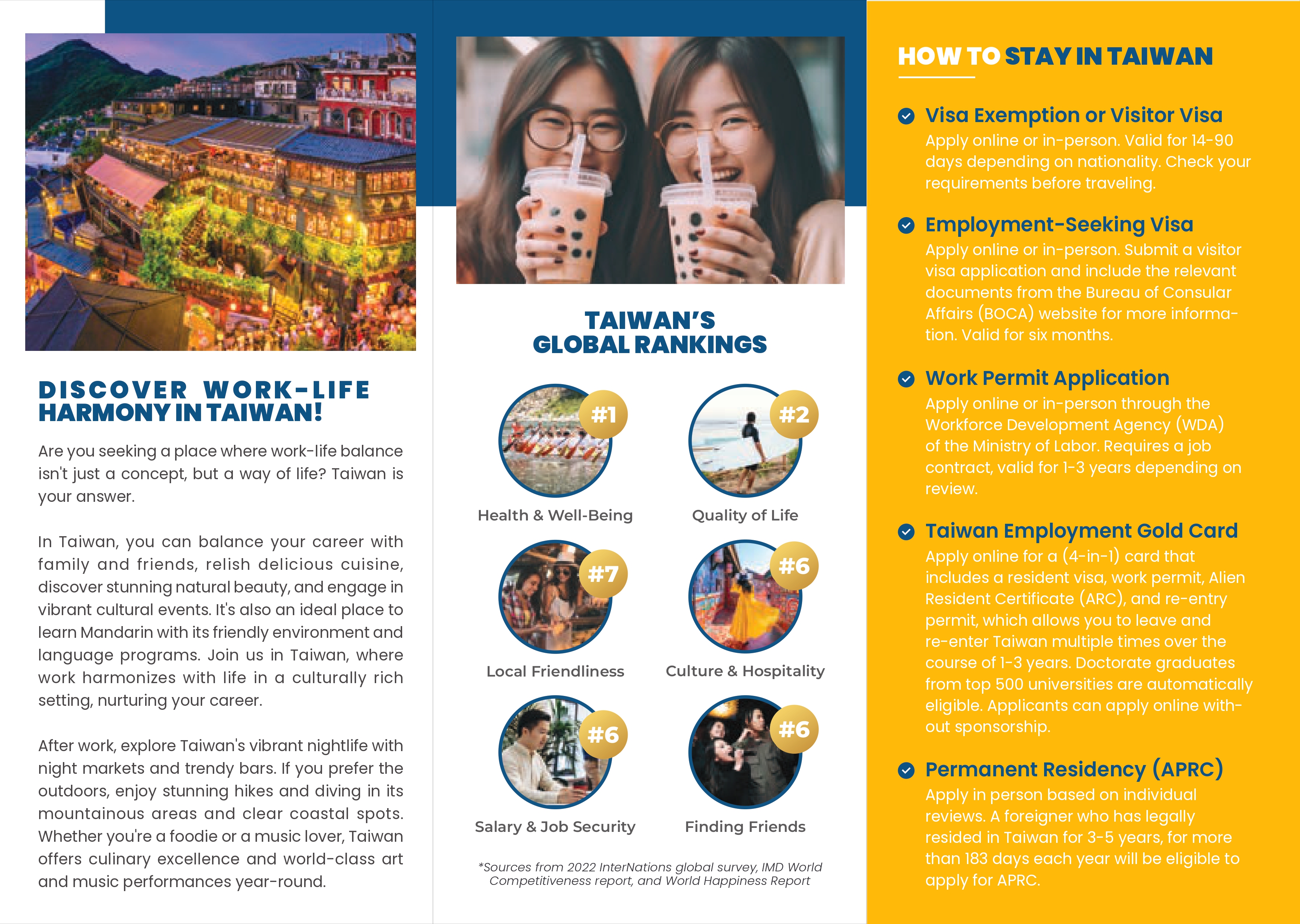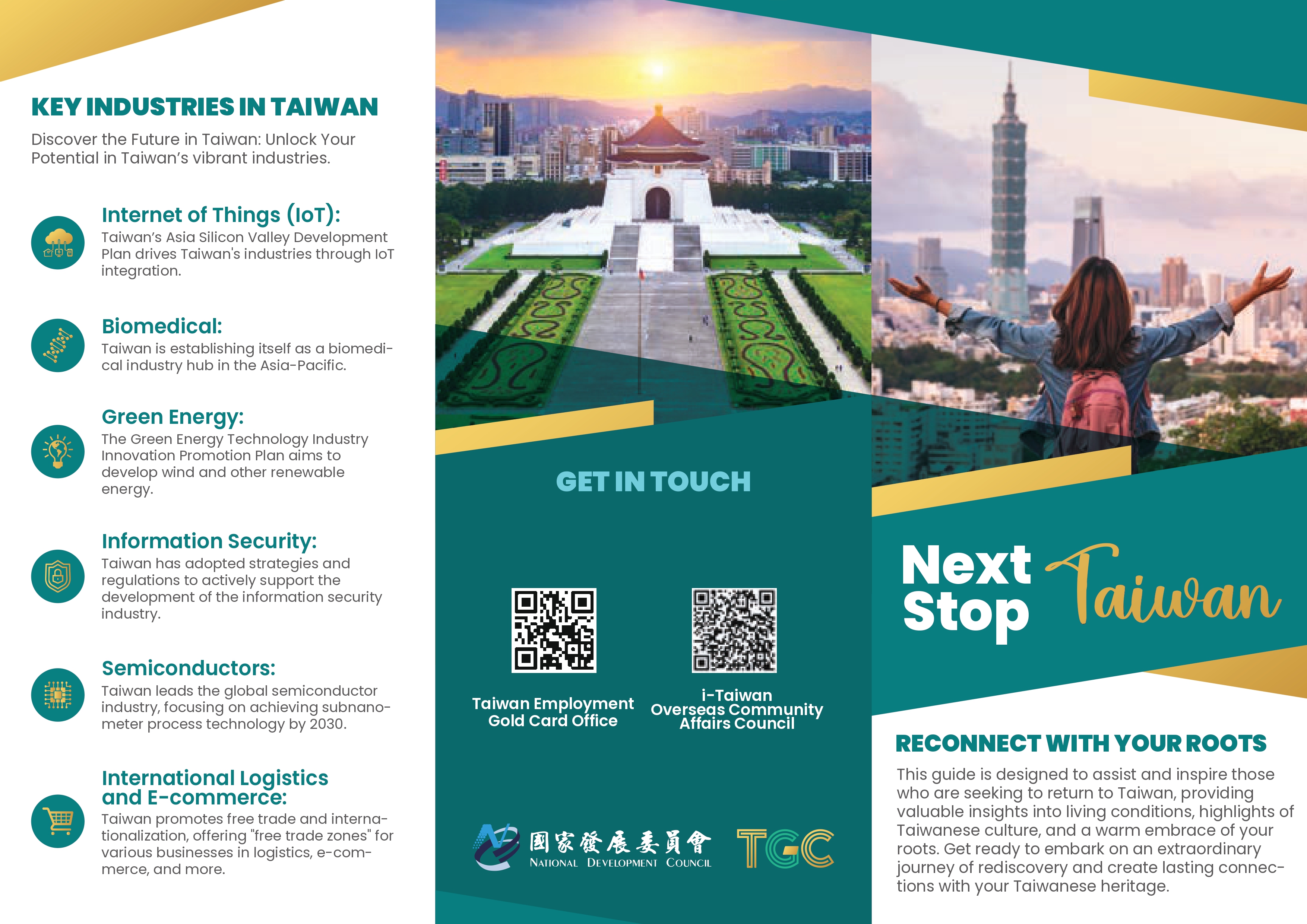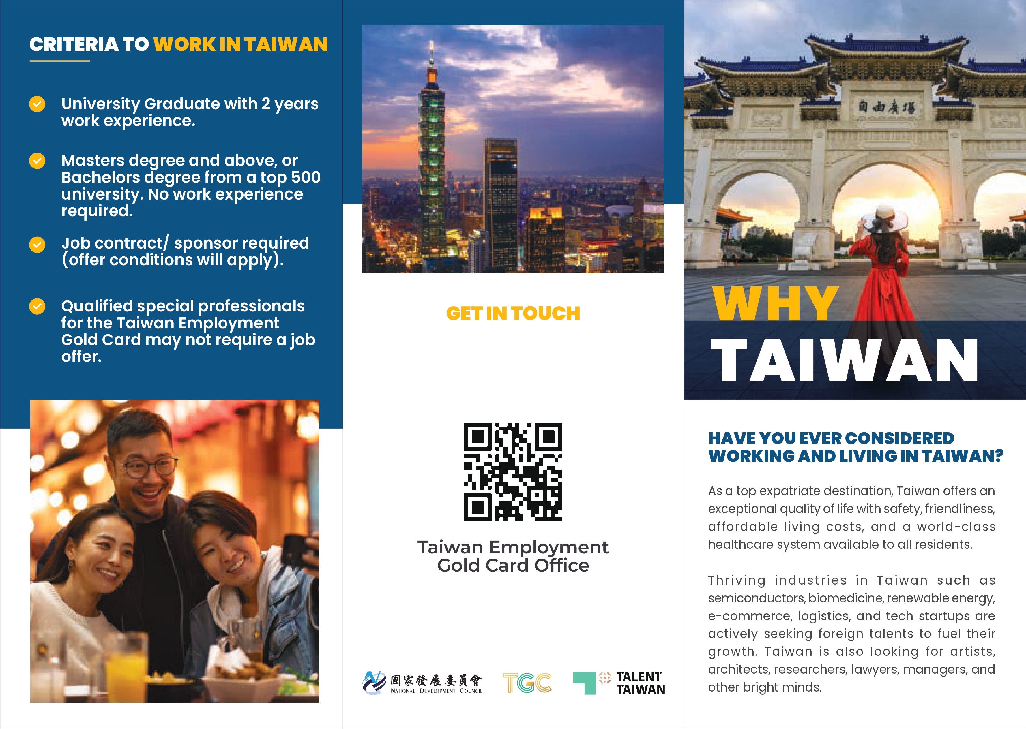 訊息內容 附件檔案01_Qualification Quick Check(.pdf)02_Criteria to work in Taiwan(.pdf)03_Key industries in Taiwan 1(.pdf)04_Key industries in Taiwan 2(.pdf)相關照片