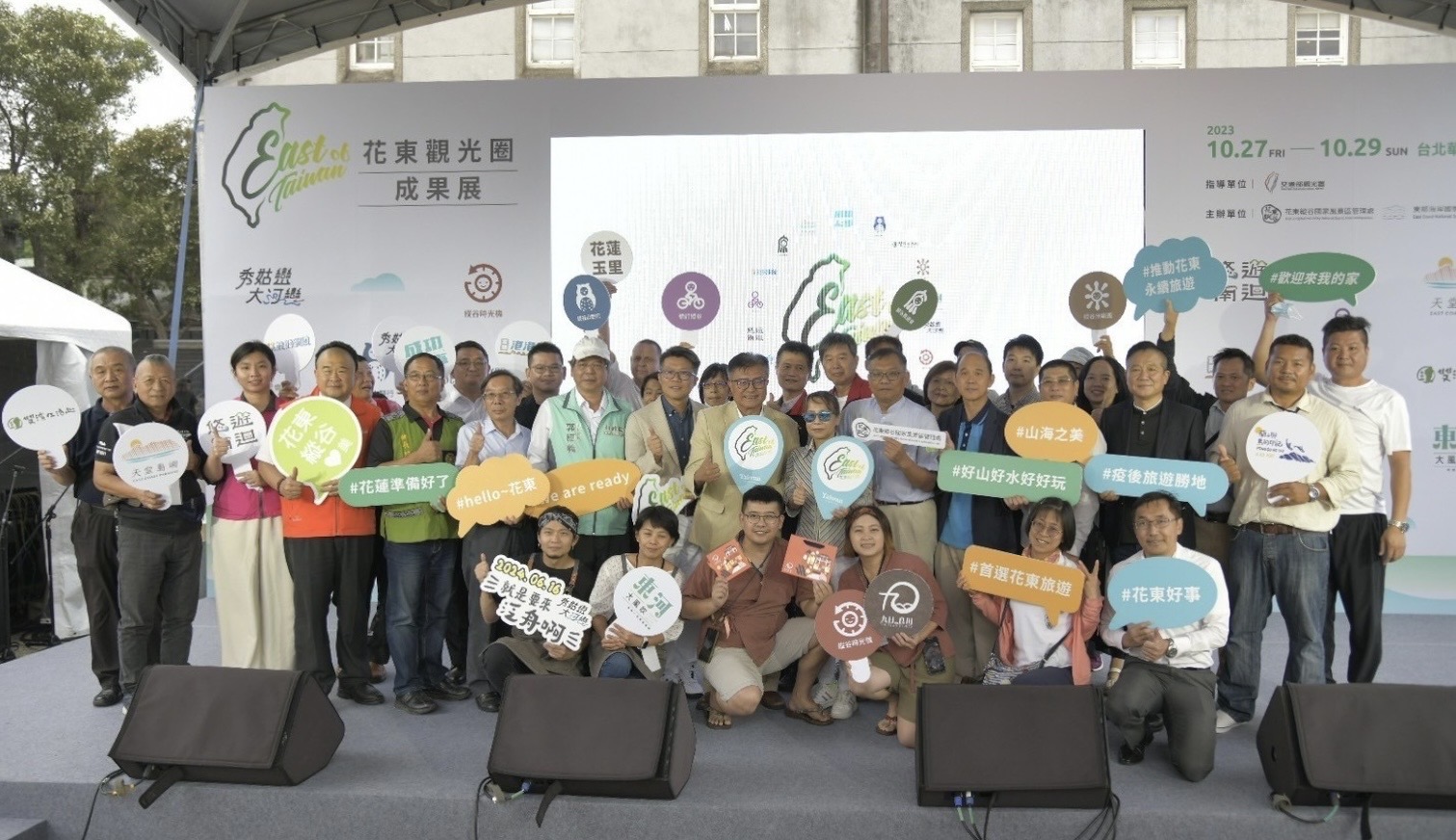成果展系列活動在立法院孔文吉立法委員、交通部觀光署吳潔萍組長、縱管處郭振陵處長、行政院東部聯合服務中心洪宗楷執行長、農業部農村發展及水土保持署臺東分署柯燦堂分署長、交通部觀光署北海岸及觀音山國家風景區管理處方正光處長、花蓮縣政府觀光處林加昌副處長,及在花東公協會理事長們及14品牌業者代表參與下揭開序幕,共同攜手力推花東觀光圈。