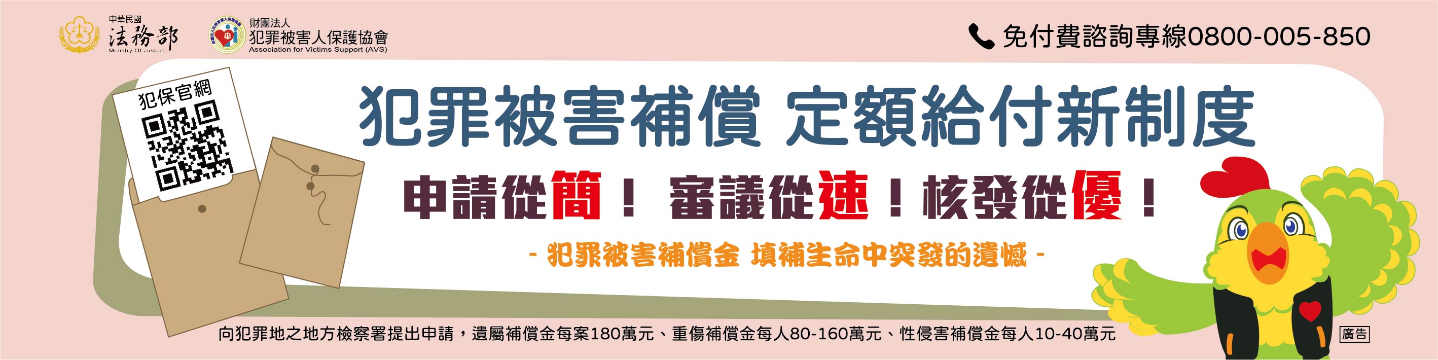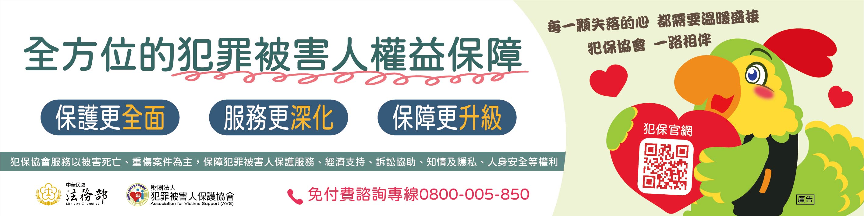 訊息內容為強化社會大眾對犯保議題與相關服務之重視與了解,法務部特製犯罪被害人權益保障法宣導文宣刊物及影片等素材及電子檔下載連結,供民眾瀏覽。😉 附件檔案閱讀版(.pdf)相關連結財團法人犯罪被害人保護協會網站財團法人犯罪被害人保護協會_粉絲專頁相關照片
