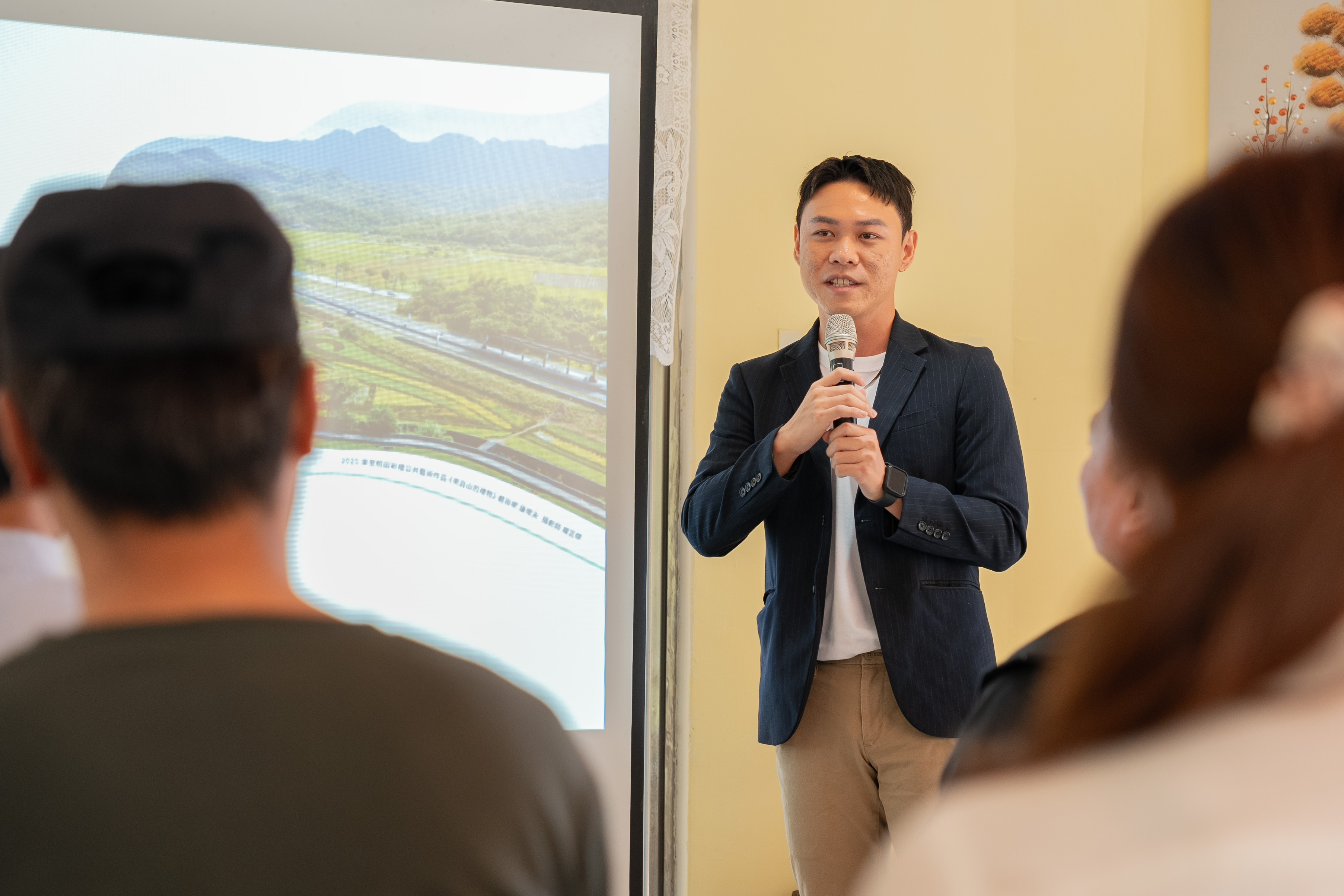 策展人由吳碩文及Osay Ongo萬星辰擔任,6位參展攝影師包括羅正傑、蕭齊駿、潘勇光、彭柏璋、沈瑞筠及吳碩文,且經由設計師高韻涵特別選用攝影師羅正傑的《東里稻田彩繪》作品作為展覽主視覺。郭振陵並說明該作品內容來自2020年脊梁山脈旅遊年,由縱管處邀請藝術家優席夫設計《來自山的禮物》之彩稻公共藝術作品,以大山、大河及大太陽欣欣向榮的生命力景象,鼓勵大家擁抱山林、愛惜如母親般的山脈。另外,此次攝影展也有多幅花東壯闊山海景觀的作品,就如參展攝影師蕭齊駿之《追火車》作品,則是在臺東鹿野中興崗哨拍攝,縱管處這個新興據點也在12月1日甫獲得「112年工程環境與美化獎-工程美化與景觀類」佳作獎肯定,歡迎攝影愛好者到花蓮鯉魚潭看展後,可以隨著攝影師的說明提示,上山下海去挑戰拍攝這些有趣的「慢速風景」。