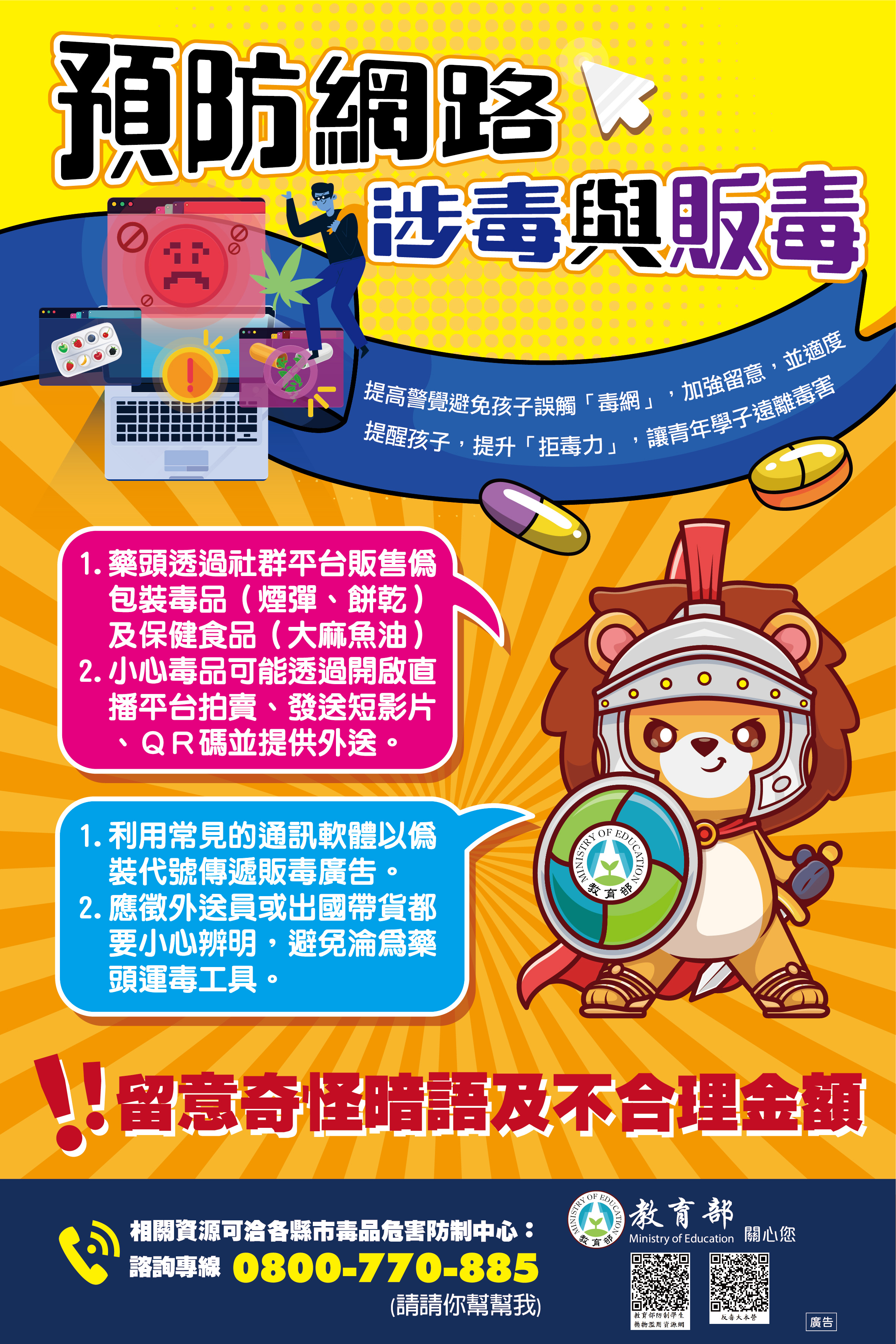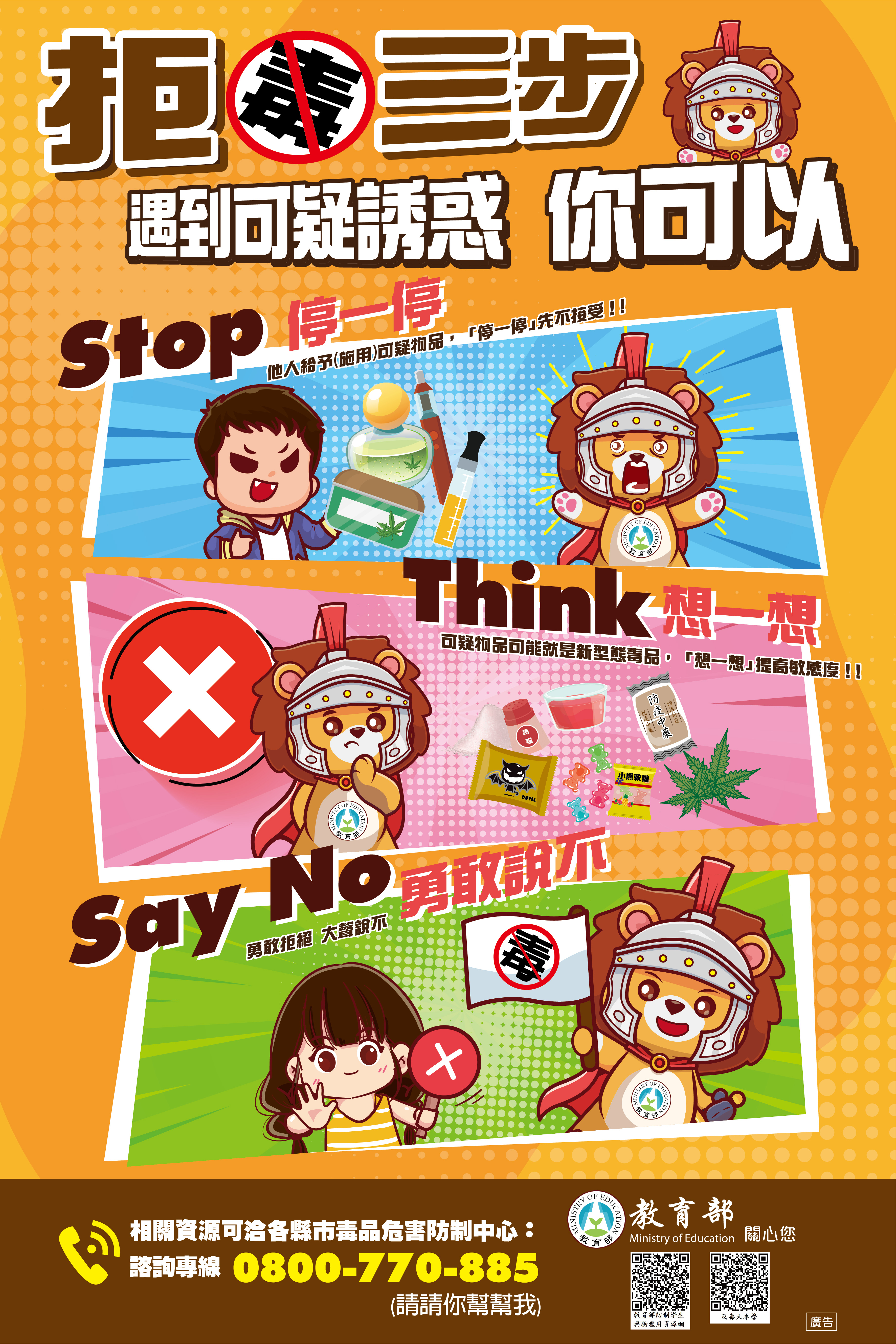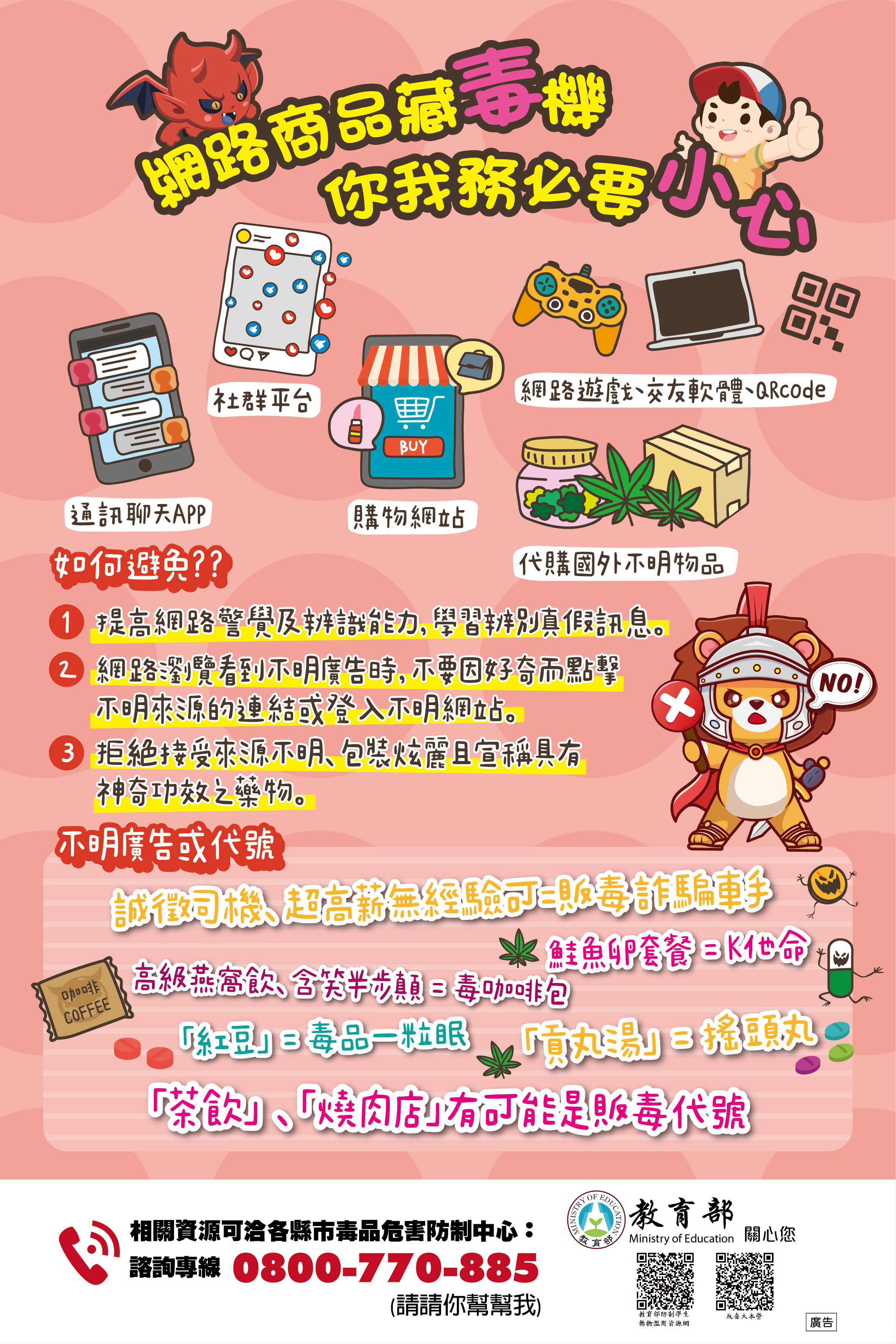 訊息內容為落實新世代反毒政策,教育部製作EDM文宣12款及反毒貼圖8款,並建置於教育部「防制學生藥物濫用資源網」(🔗文宣專區 👈),有各式管制藥品及反毒相關文宣,歡迎民眾多多參考下載運用,以提升大家反毒意識。💪😉 相關照片