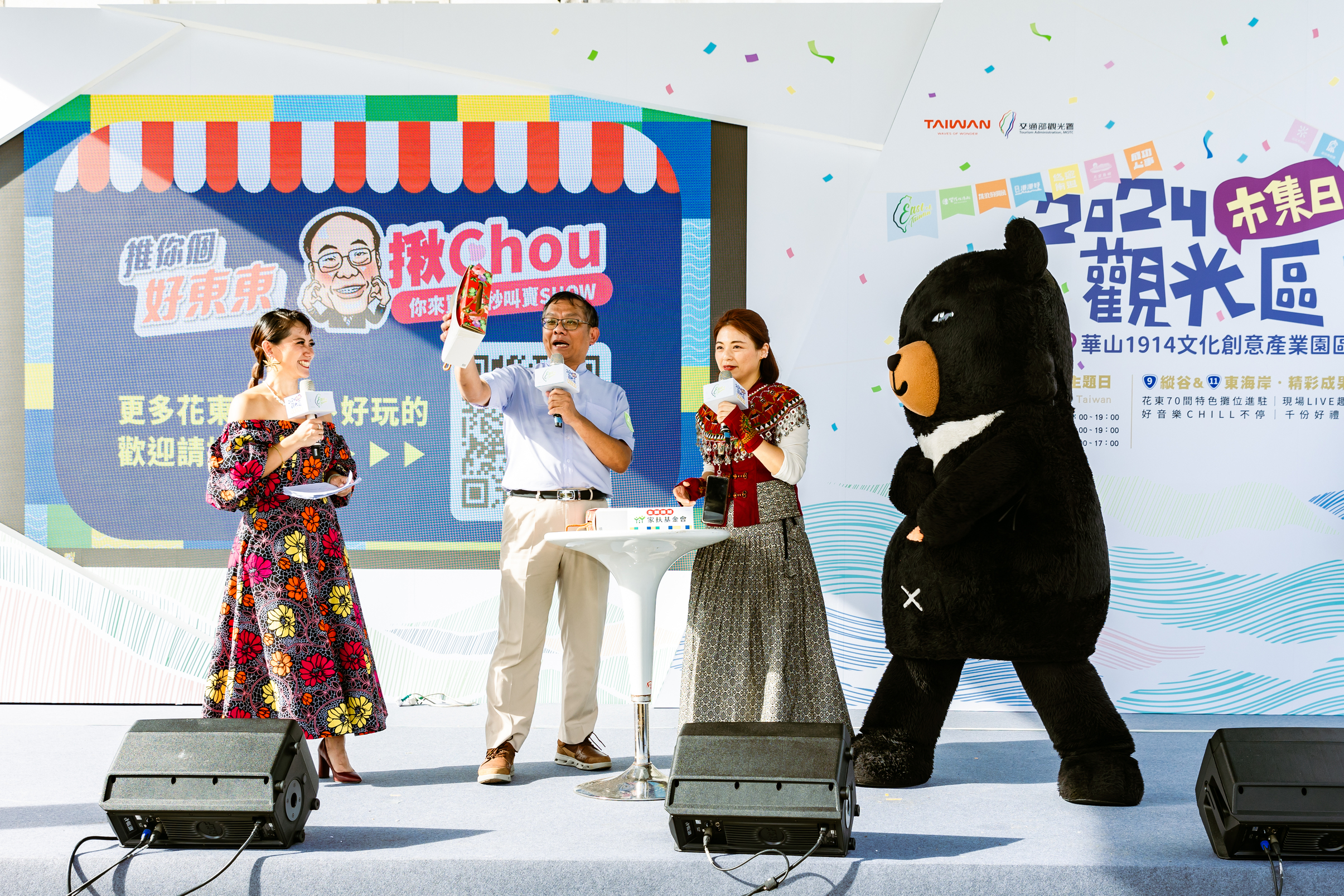 交通部觀光署周署長永暉今日特別蒞臨現場指導,並在開幕致詞中表示,「今年有18個觀光圈將輪流來到台北介紹給各位遊客,活動宗旨與核心價值在促進區域旅遊、整合觀光圈相關產業,透過觀光區市集日的辦理展現觀光旅遊區的發展,並推廣至國際,吸引更多自由行旅客來到台灣。這次活動也特別設置署長獎,活動最後一天將頒發最佳設計獎和人氣獎,希望大家能積極參與投票。」開幕結尾並加碼彩蛋,由署長、東管處林維玲處長及縱管處郭振陵處長一起「出賣花東」,現場特別安排「好東東叫賣秀」,現場搶購氣氛熱烈。