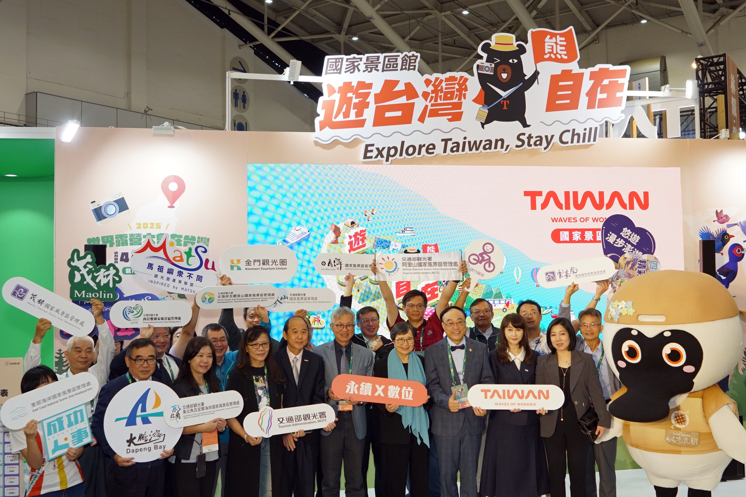2024 ITF台北國際旅展於今(1)日起,一連四天在南港展覽館1館熱鬧登場,交通部觀光署以「永續」及「數位」為國家景區館主題參展,期透過「遊台灣熊自在Explore Taiwan, Stay Chill」的概念,帶領民眾深度探索臺灣自然與文化之美。今日上午由交通部觀光署周永暉署長、財團法人台灣觀光協會簡余晏會長、財團法人台灣觀光協會葉菊蘭榮譽會長、財團法人台灣觀光協會莊豐如副會長等貴賓揭開序幕,以主視覺延伸出的開場動畫呈現近年風靡臺灣的旅遊特色。