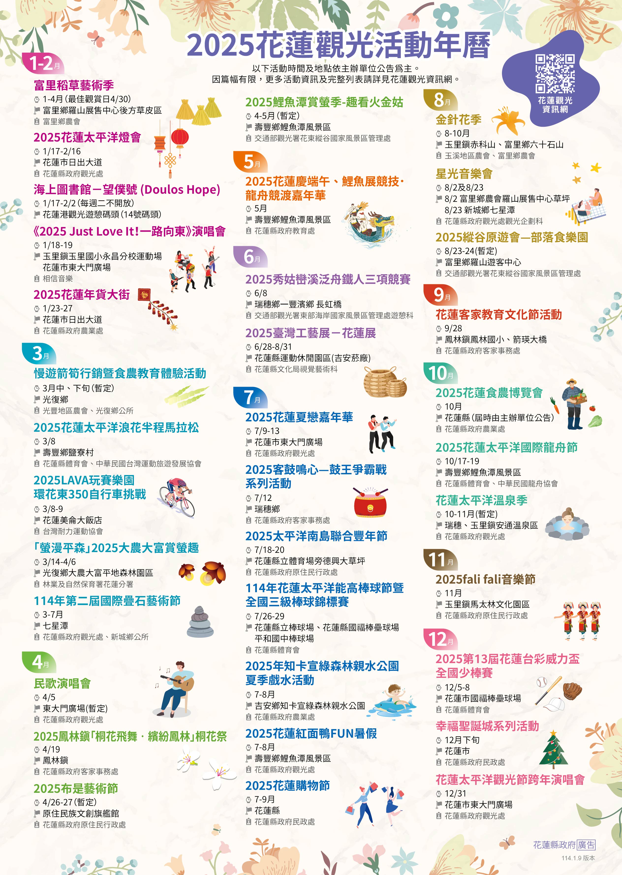2025花蓮觀光年曆及2025花蓮觀光活動【總表】