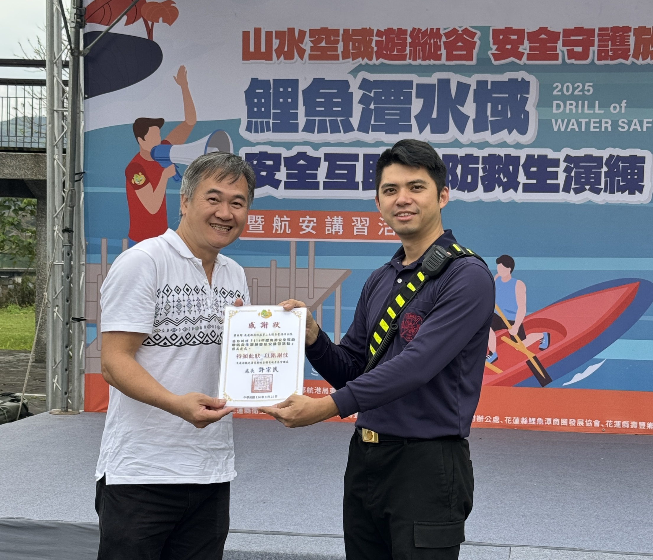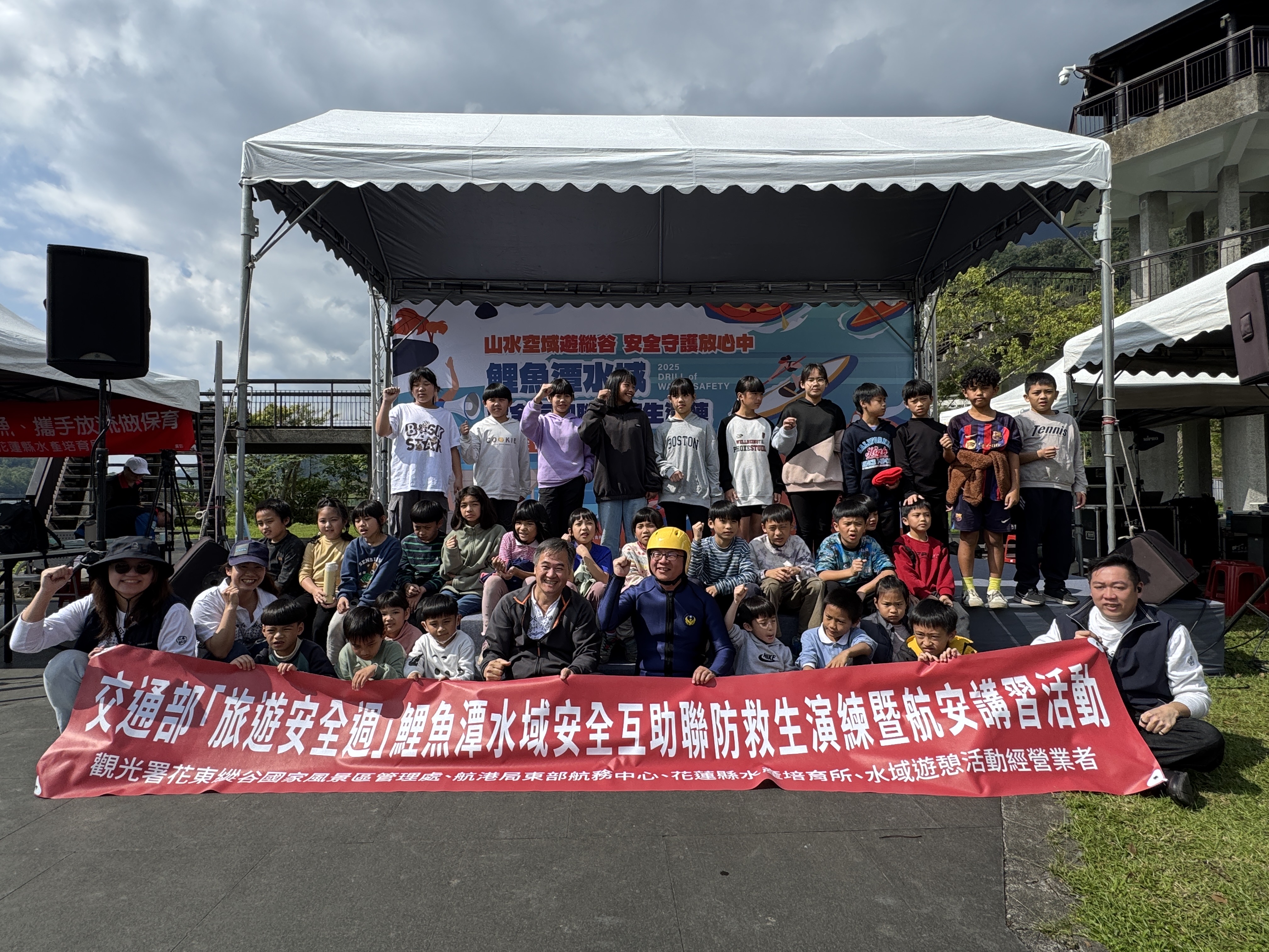 交通部觀光署為提升國人旅遊安全,同時促進發展永續觀光經營,自106年起,將每年3月的第3週訂為「旅遊安全宣導週」,希望透過相關安全措施整備及宣導,強化國人旅遊安全意識,並結合相關政府部門與旅遊業者的力量,降低旅遊意外的發生;而「Green Destinations」綠色目的地,已成為台灣未來觀光旅遊發展重點,有鑑於此,花東縱谷國家風景區管理處(以下簡稱縱管處)今年與交通部航港局東部航務中心(以下簡稱東航中心)、花蓮縣消防局、花蓮縣水產培育所共同合作,於3月21日上午8時30分在花蓮鯉魚潭風景區之潭北碼頭,舉辦「114年鯉魚潭水域安全互助聯防救生演練暨航安講習」活動,攜手跨領域公私部門通力合作,維護鯉魚潭風景區水域安全與生態環境。