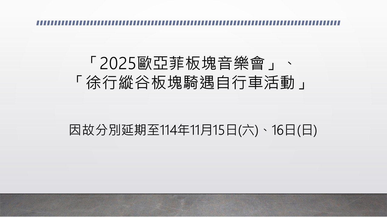 🎶🚴♂️【活動延期公告|2025歐亞菲板塊音樂會、徐行縱谷板塊騎遇自行車活動】
