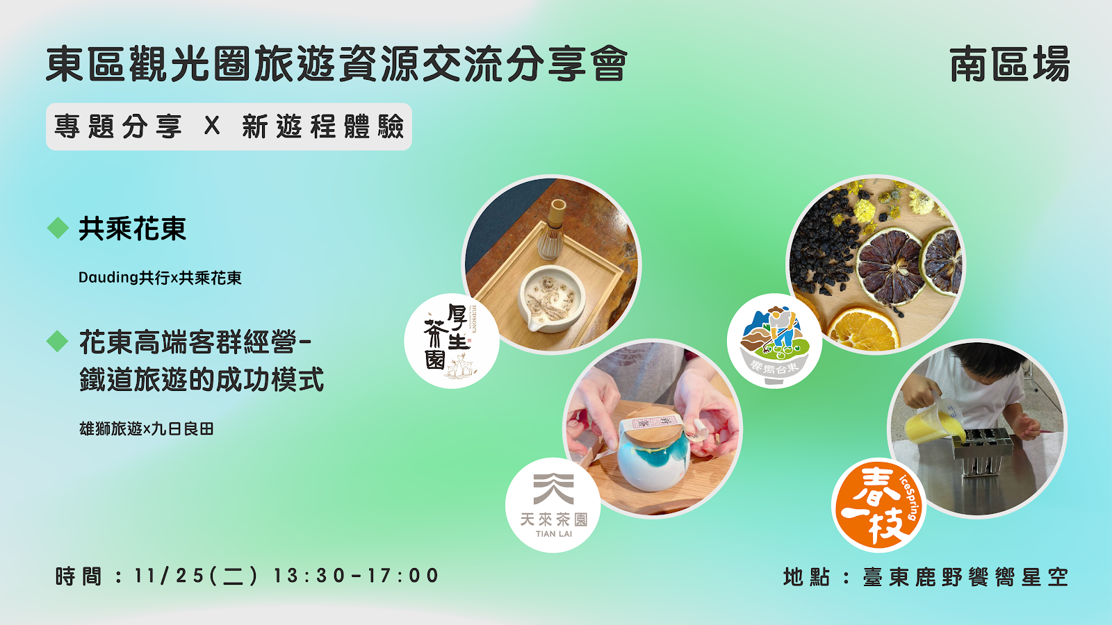 「東區觀光圈旅遊資源交流分享會」南區場登場 花東縱谷×東海岸攜手,產官學共推跨域合作與體驗經濟,打造更具韌性的觀光產業鏈