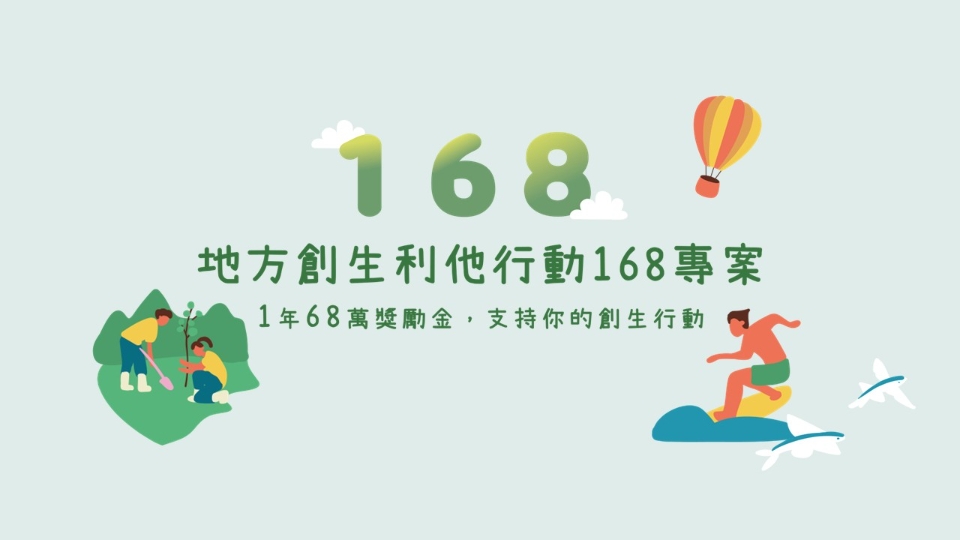 訊息內容國家發展委員會為推動地方創生,鼓勵青年以「利他行動、共好實踐」為核心精神,提出可帶動地方共好合作的行動方案,辦理「地方創生利他行動168」專案,並於114年11月28日啟動徵件作業。 旨揭專案採線上申請,請符合資格單位於申請時間內將應備文件上傳至報名網站(👈請點我),逾時恕不受理。 有關旨揭專案之最新消息,詳見國家發展委員會地方創生入口網(👈請點我)。相關連結115年度「地方創生利他行動168」專案 徵件報名系統國家發展委員會地方創生入口網相關照片