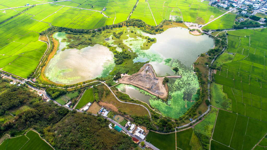 從高空俯瞰大坡池,宛如一池明鏡