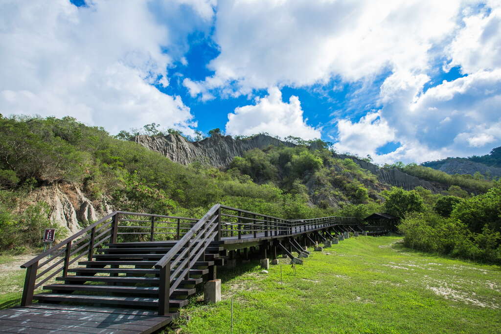 沿著木棧道深入利吉惡地,猶如走入一條天然的地質史展示走廊