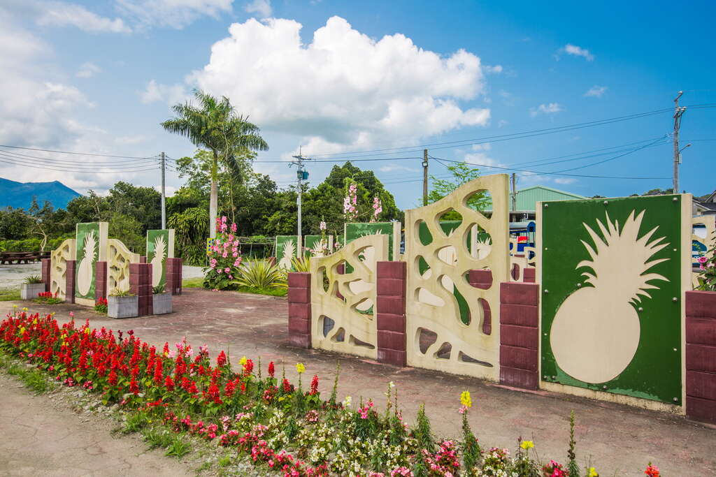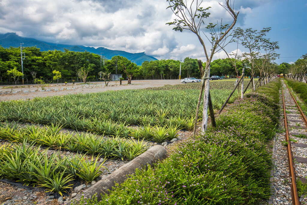 搭上輕軌小火車,沿途經過一望無際的鳳梨田