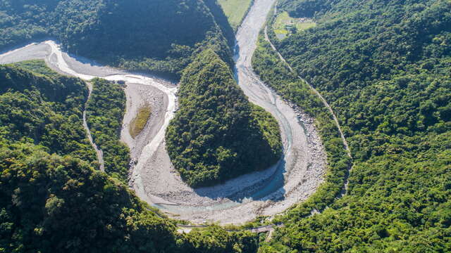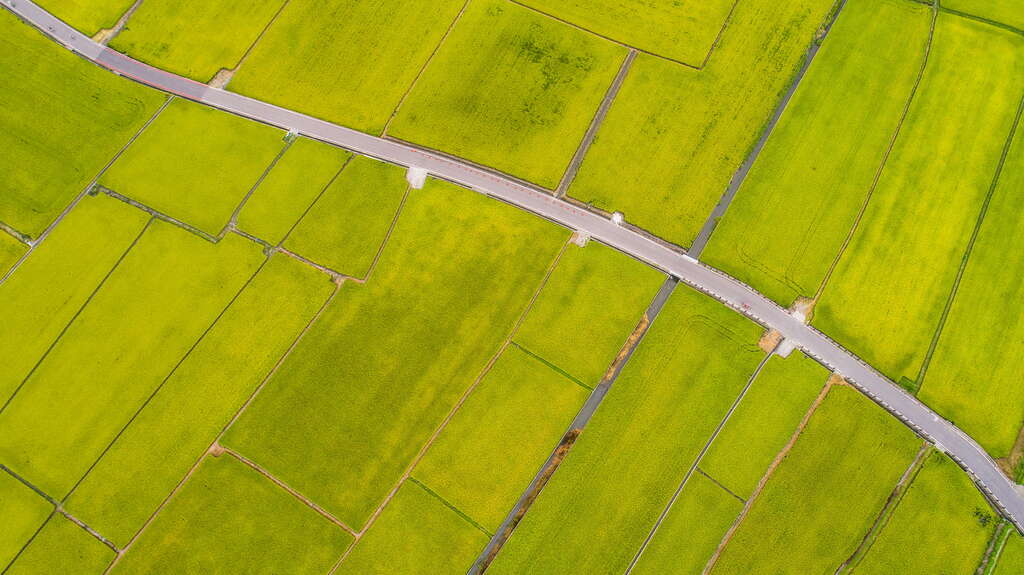 鳥瞰被金黃稻田包圍的伯朗大道,令人非常震撼