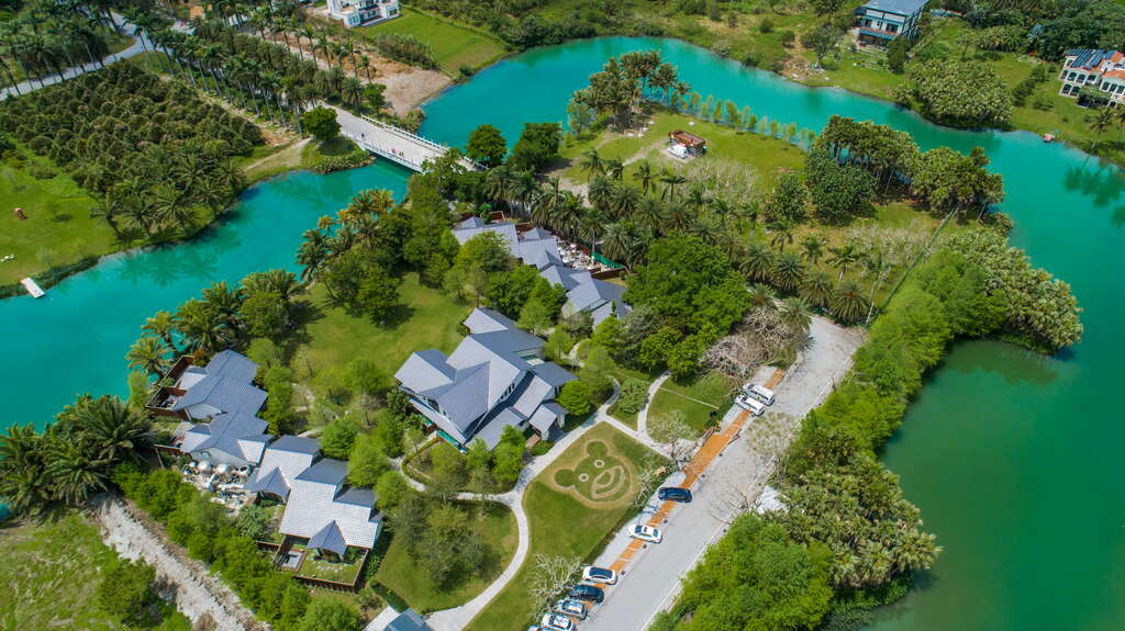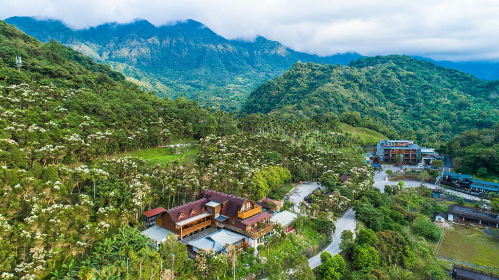 4-5月開滿白花的澳洲茶樹包圍著安通溫泉區