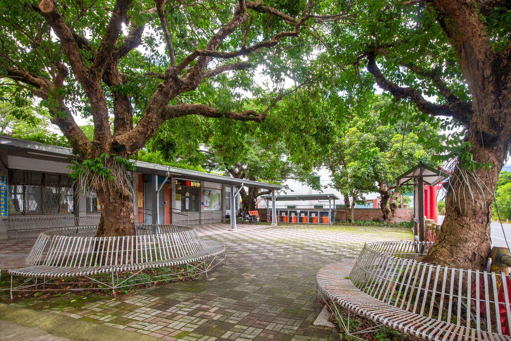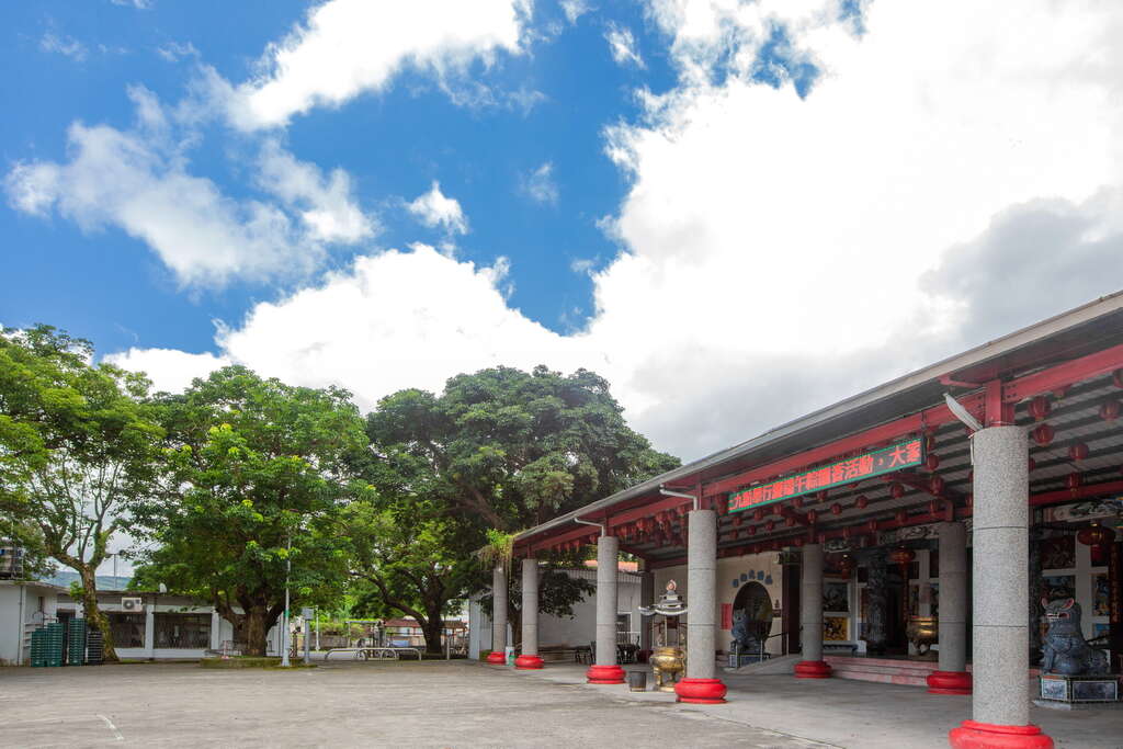 有一座被老樹圍繞的鹿野崑慈堂