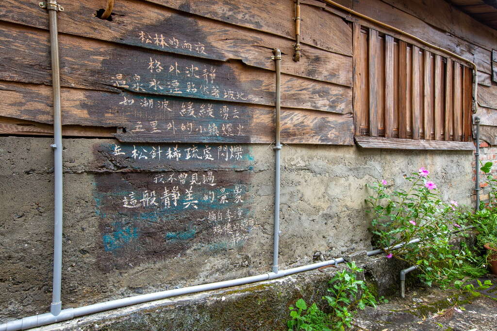 斑駁的木牆上寫著新詩