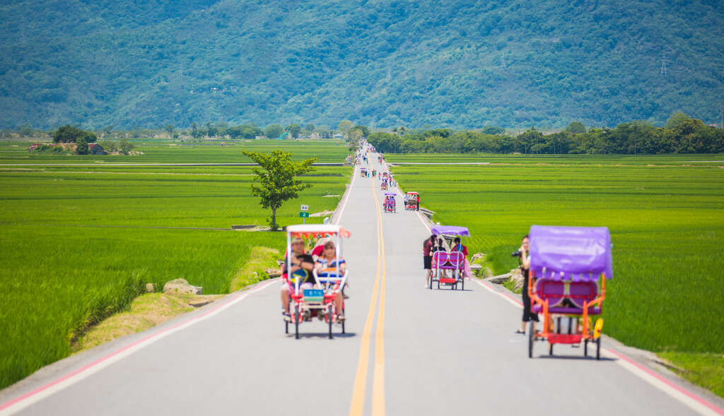 位池上鄉,花東縱谷臺東段的起始,一覽無盡的稻田景緻,令人讚嘆,那曾是知名廣告的拍攝場景。踩著單車,沿著水圳自行車道悠遊的同時,可知這條自行車道也是農夫們平時「巡田水」的路線,就算無法親自下田,跟著農夫們的腳步,也能一探那稻米好吃的緣由,絕對是收獲良多。(停留約1小時)