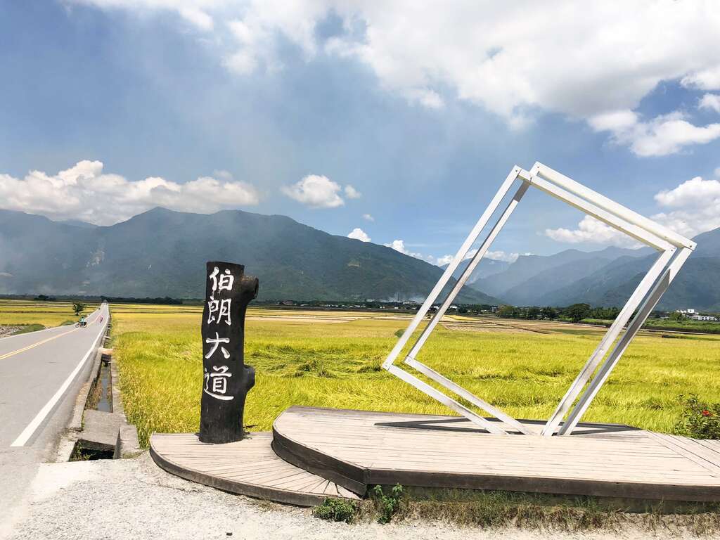 筆直的大道正式名稱為錦新三號道路,全長約2.2 公里,由於兩旁毫無電線桿,加上逢稻穗成熟時,道路兩旁無邊無際的金色稻穗隨風搖曳,寧靜的田園景緻,被伯朗咖啡選中拍攝廣告,之後知名藝人代言的長榮航空亦來此取景,而被稱為「奉茶樹(原金城武樹)」,自此聲名大噪,將這條道路暱稱為「伯朗大道」。在伯朗大道的中間,有一條S 型的道路叫做萬新道路,在一望無際的稻田中騎進蜿蜒的田間小徑,重現了當時知名藝人騎車的廣告片段,如此美麗的田園風景,依舊深深吸引各地遊客前來朝聖騎單車。